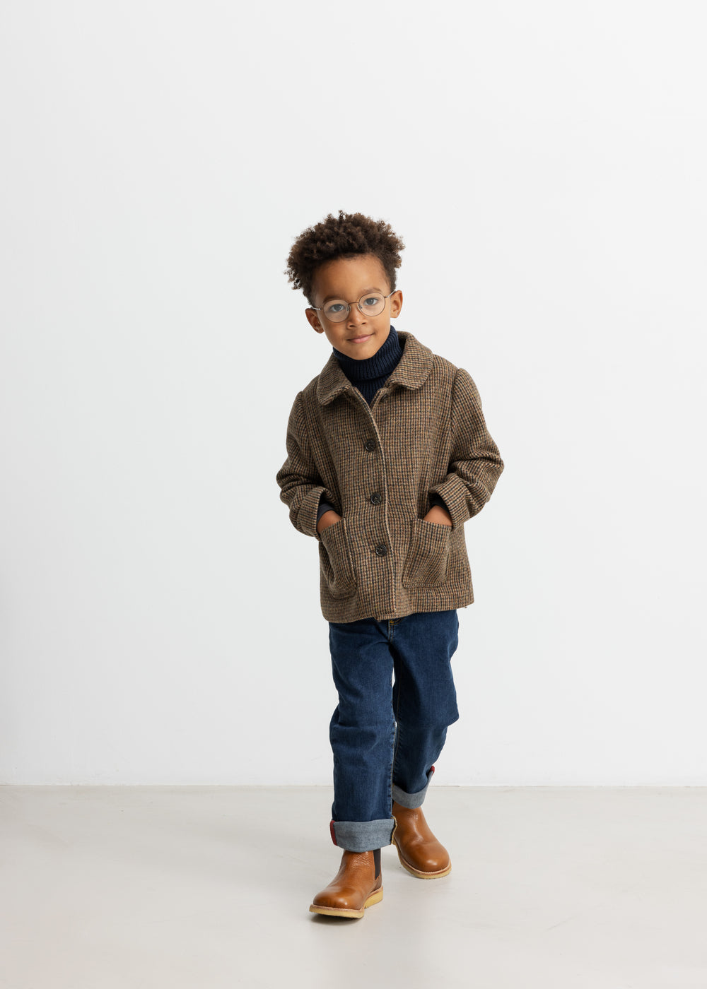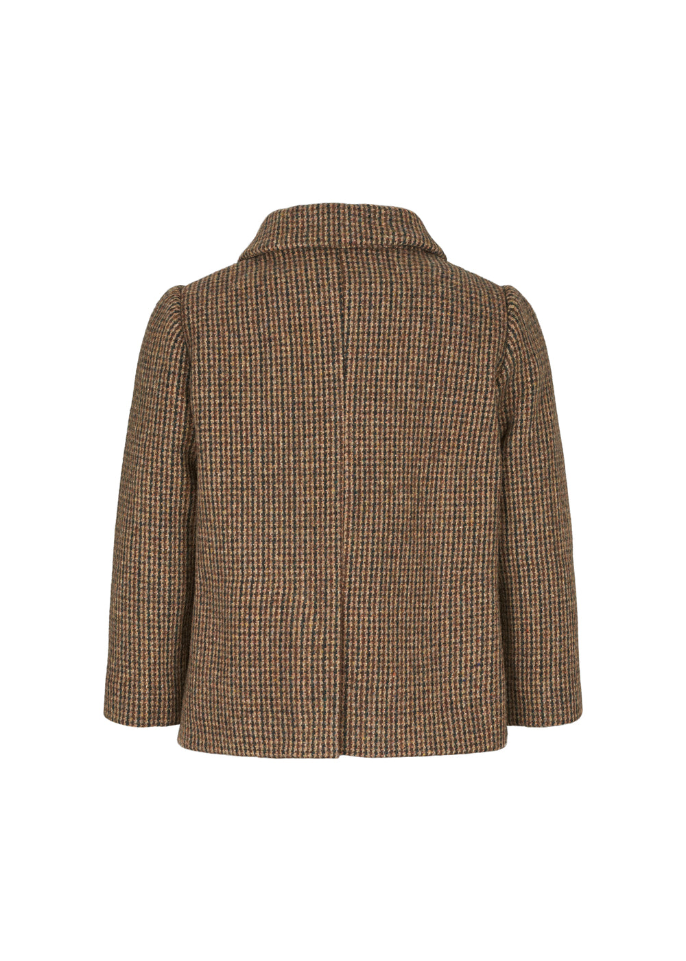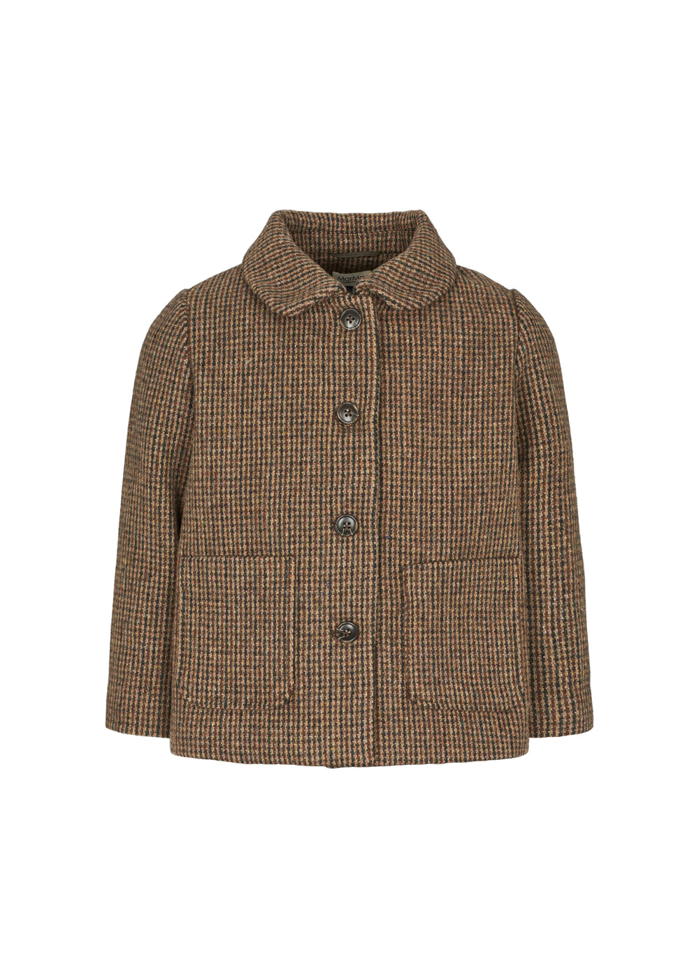 Klassisk uldfrakke med et tidløst ternet mønster perfekt til de køligere måneder. Jakken har knaplukning foran med fire synlige knapper og en elegant krave. Jakken har to store firkantede lommer foran, der giver god plads til opbevaring. En stilfuld og funktionel jakke, der kombinere klassisk design med komfort og varme.
