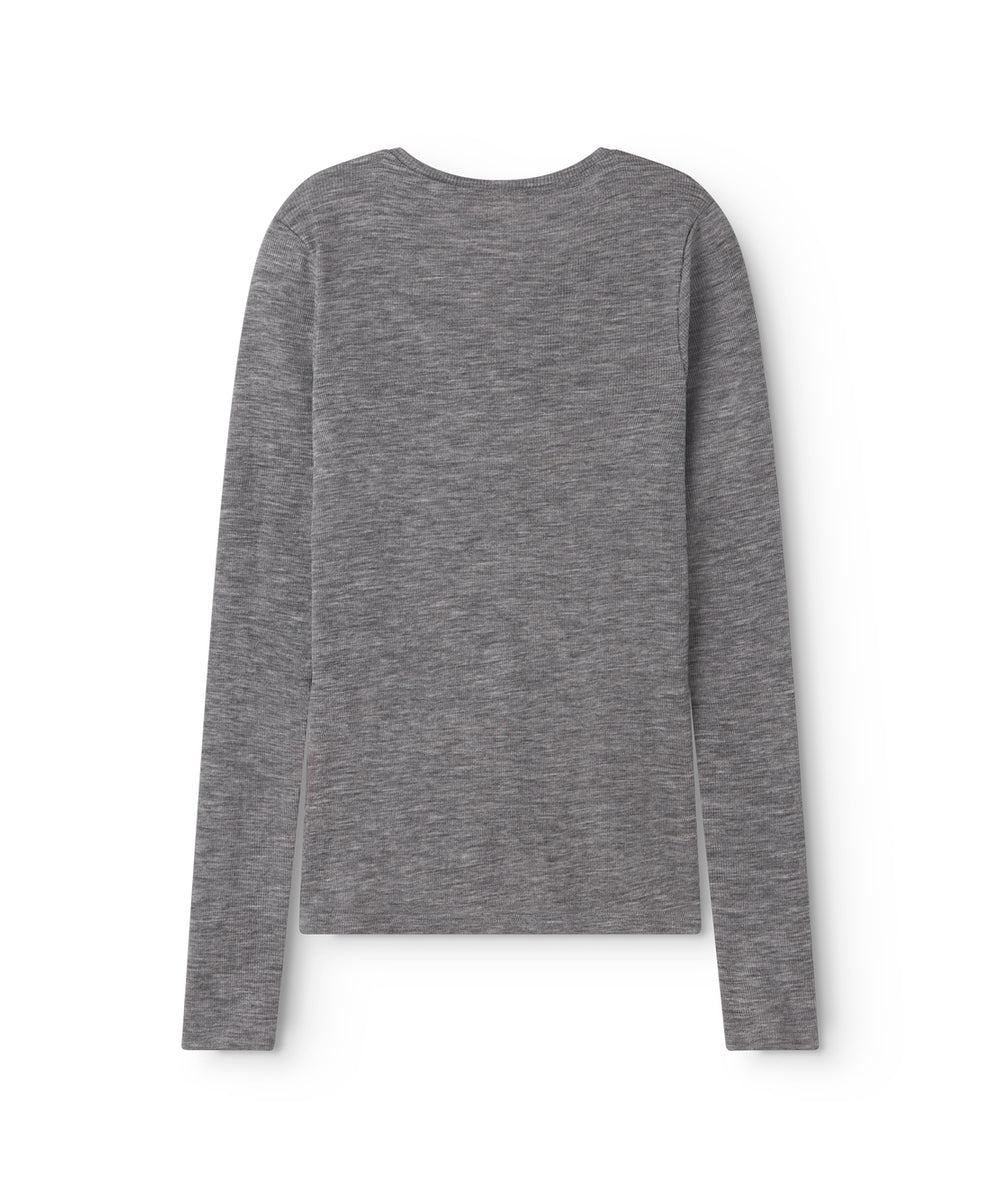 Tamra W, Uld Pointelle T-shirt - Grey Melange