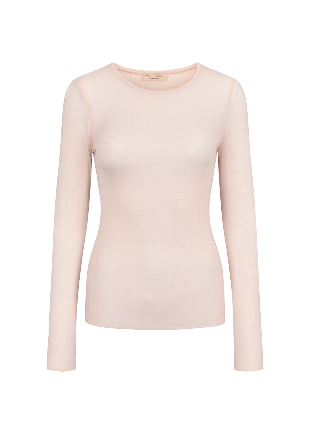 Enkel langærmet t-shirt til kvinder i 100% merino uld. T-shirten har fine pointelle detaljer.