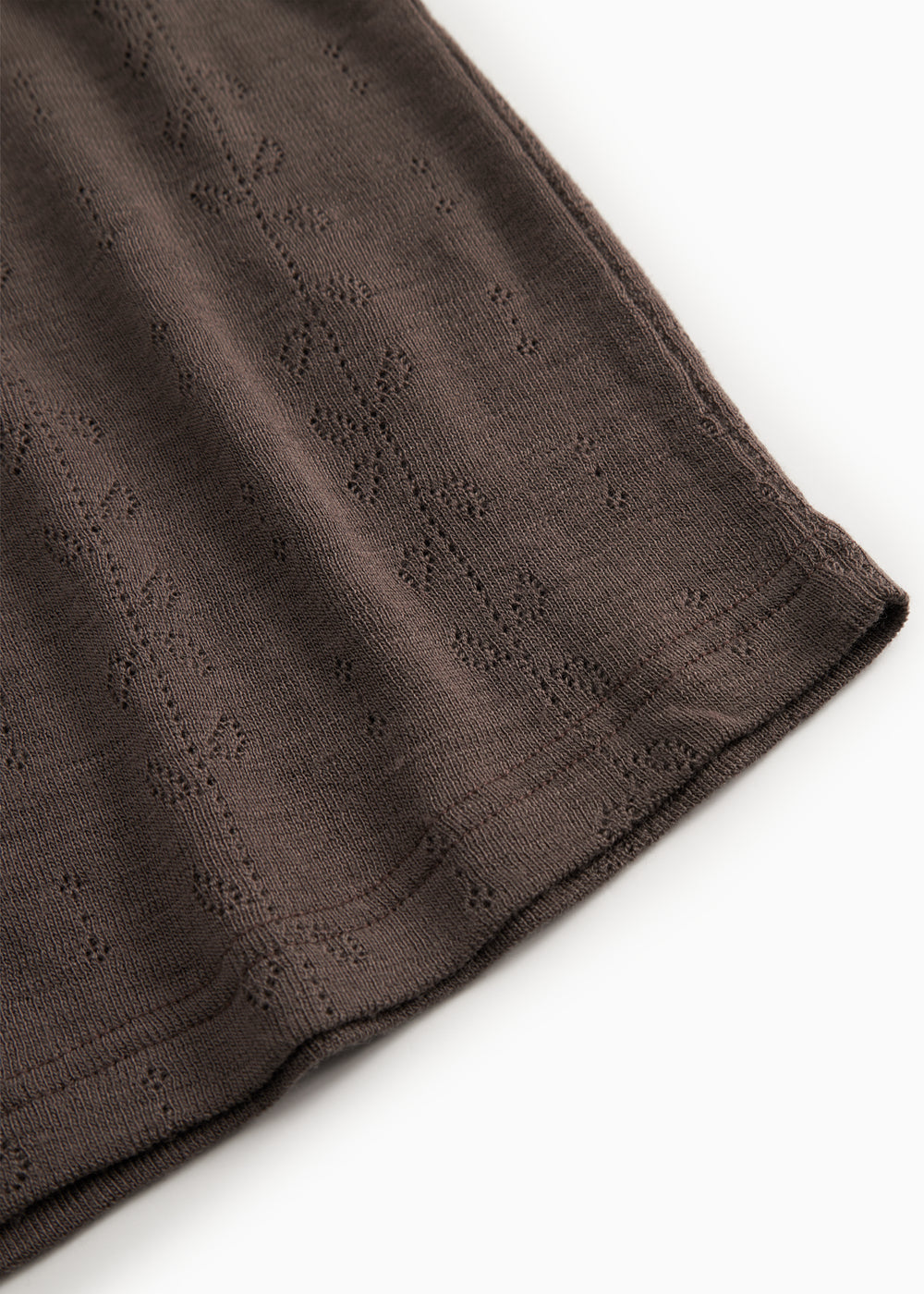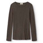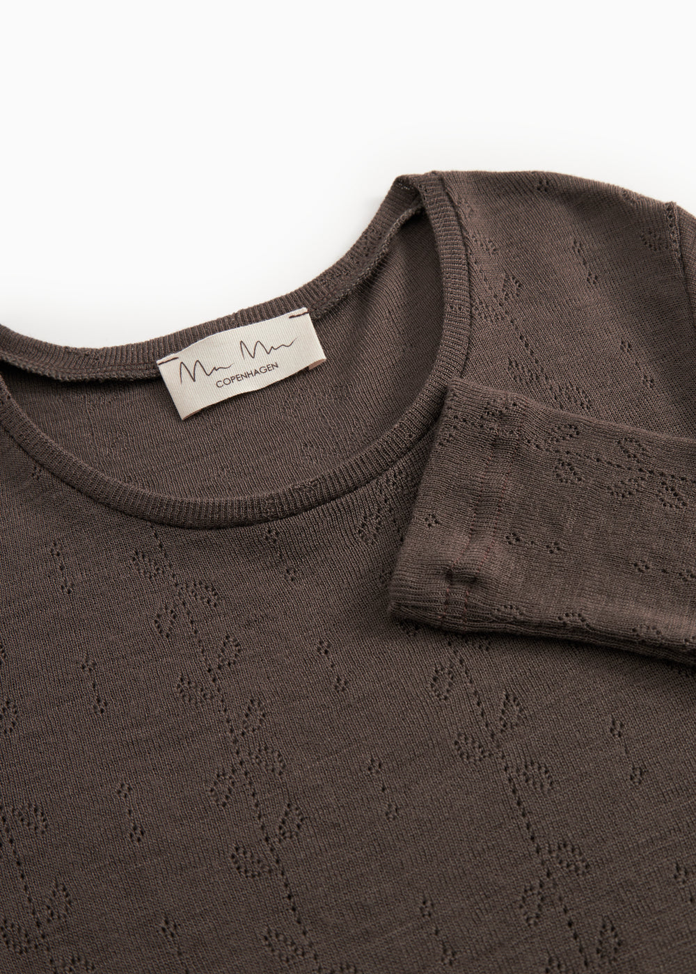 Enkel langærmet varm pointelle T-shirt til kvinder.