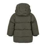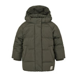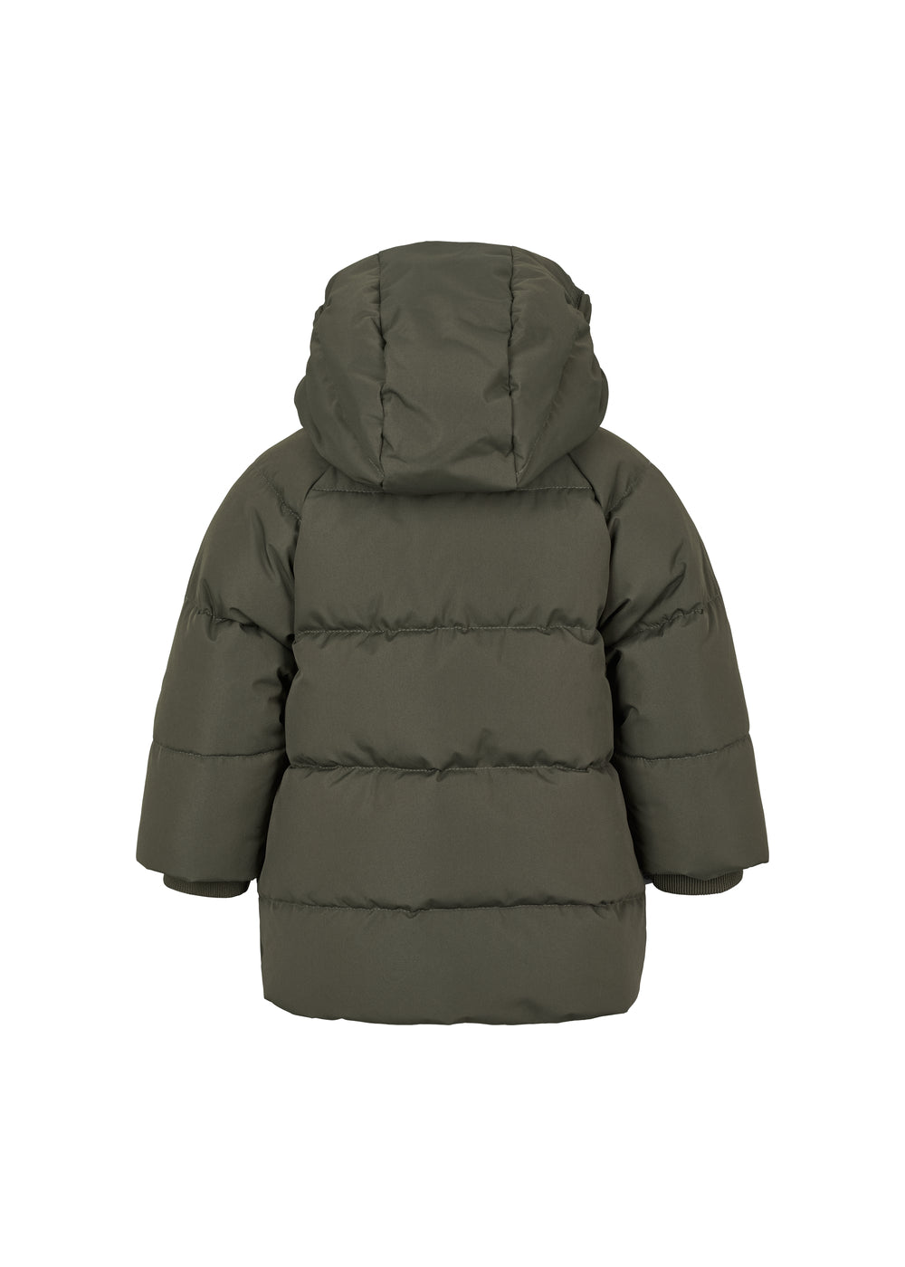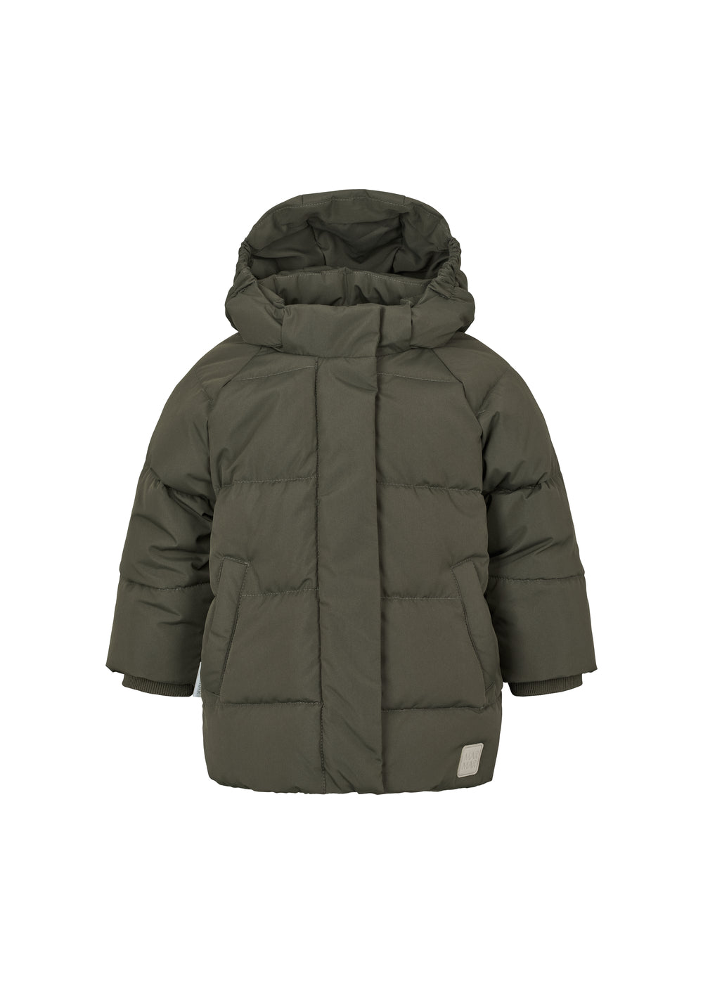 Dunjakke til de mindste, designet til at holde barnet varmt og komfortabelt i de kolde måneder. Jakken har aftagelig hætte, to funktionelle skrå sidelommer, hvor hænderne kan holdes varme eller småting kan opbevares. Dunjakken lukkes med skjult lynlåslukning foran med en bred stormflap, der lukkes med trykknapper, hvilket giver ekstra beskyttelse mod vind og kulde. Jakken sidder tæt omkring håndleddene, så ingen kulde trænger ind. Dunjakken er ideelt til både hverdagsbrug og udendørs aktiviteter, hvor barnet har brug for en varm, slidstærk og stilfuld jakke.