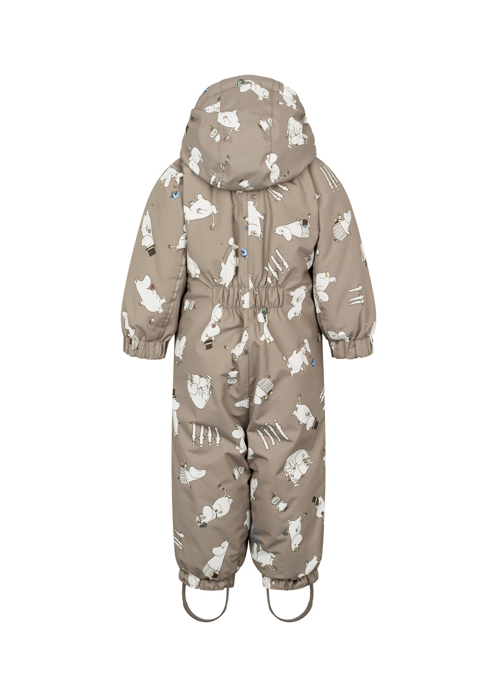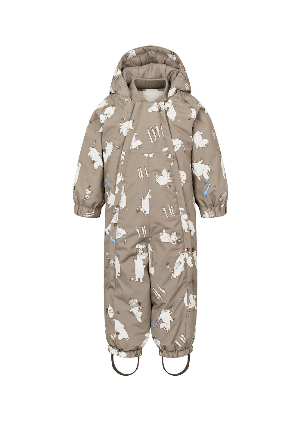 Behagelig, varm og rummelig vinter flyverdragt til de mindste med Moomin print som føles meget let og blød på kroppen. Flyverdragten lukkes med to lange lynlåse som gør det nemt at tage flyverdragten af og på. Flyverdragten er udstyret med aftagelig hætte, justerbare siliconestropper, som kan fastgøres under støvlerne for at sikre en god pasform og forhindre sne i at trænge ind. Flyverdragten er perfekt vinterovertøj i slidstærkt materiale og med thermolite isolering der sikrer en varm og tempereret kropstemperatur.