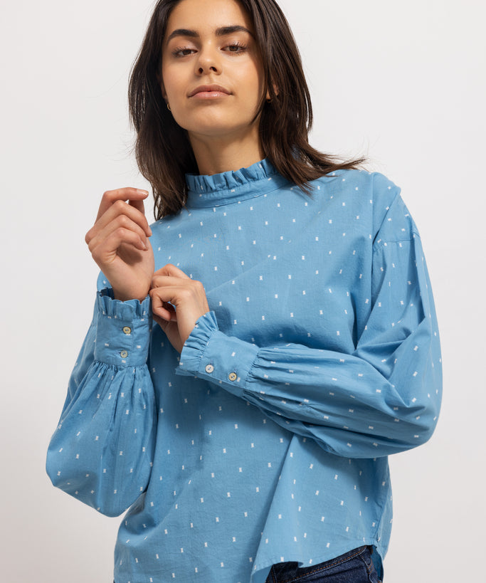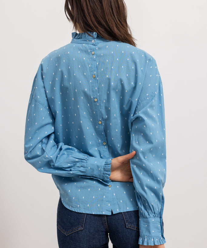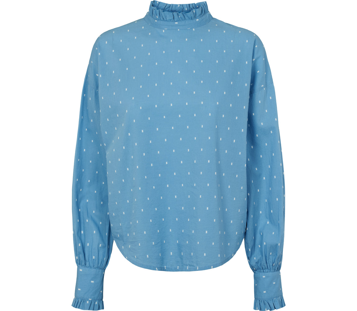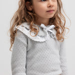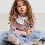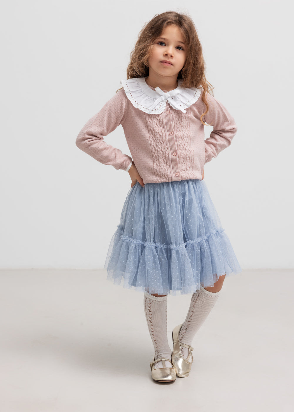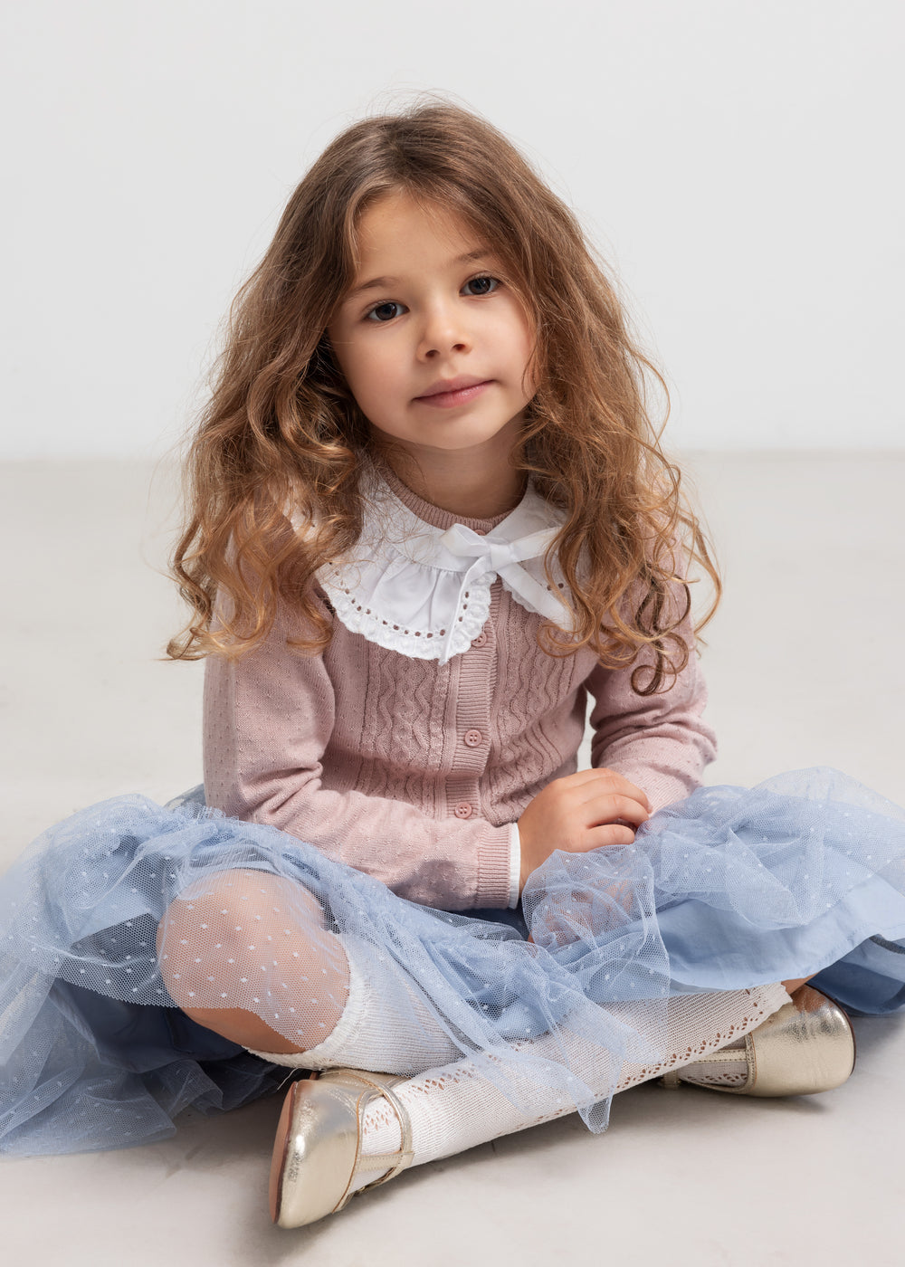 Smuk pyntekrave med broderet hulmønster. Kraven lukkes foran ved at binde en sløjfe.