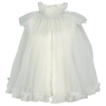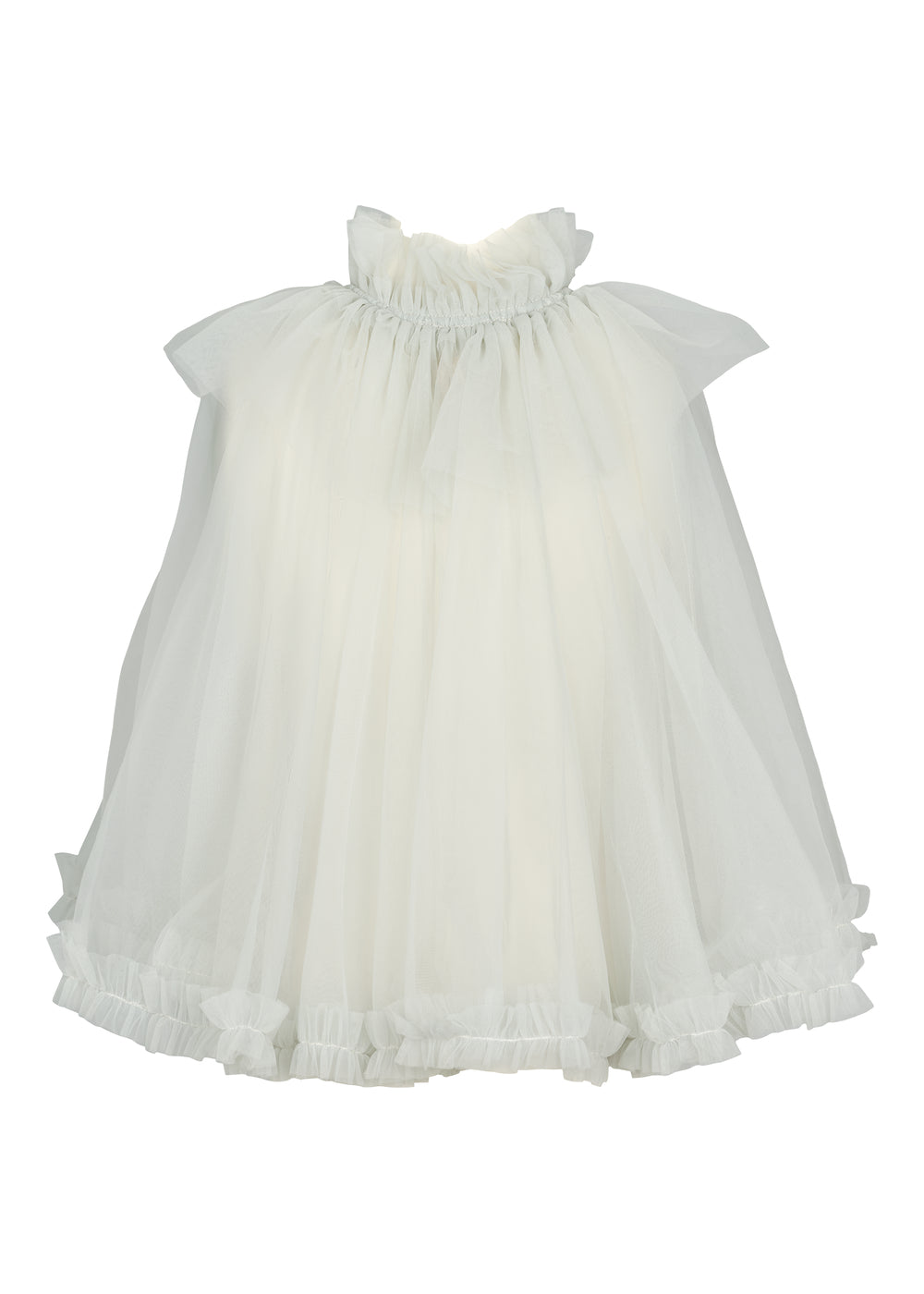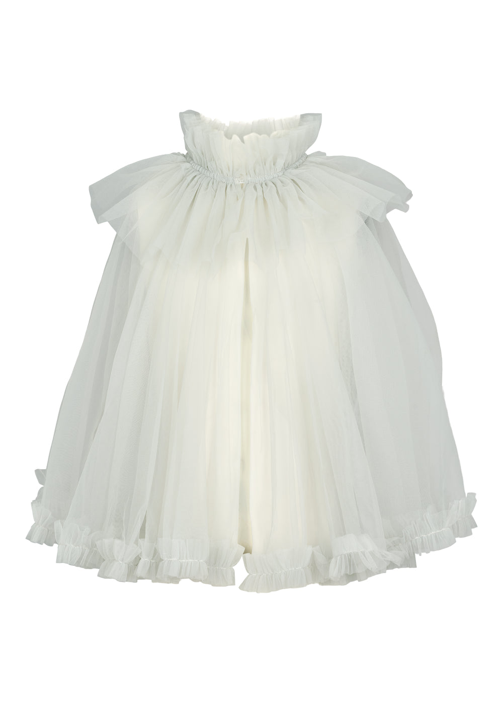 Fin og festlig kappe med mange lag tyl for volumen. Kappen har knaplukning foran samt elastik i halsen for et behageligt fit