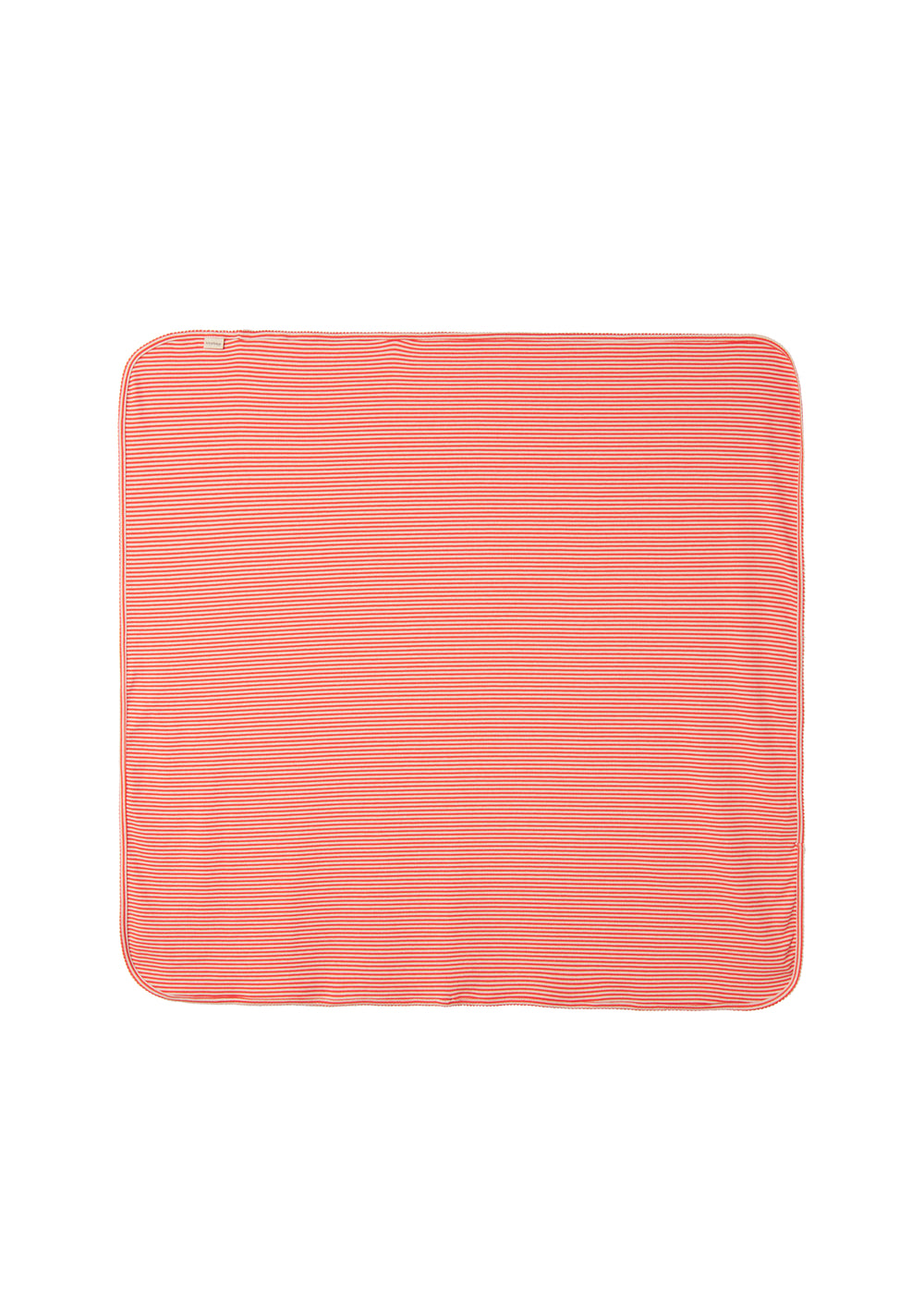 Baby tæppe med striber, picotkanter og med rundede hjørner. Tæppet måler 80 x 80 cm.