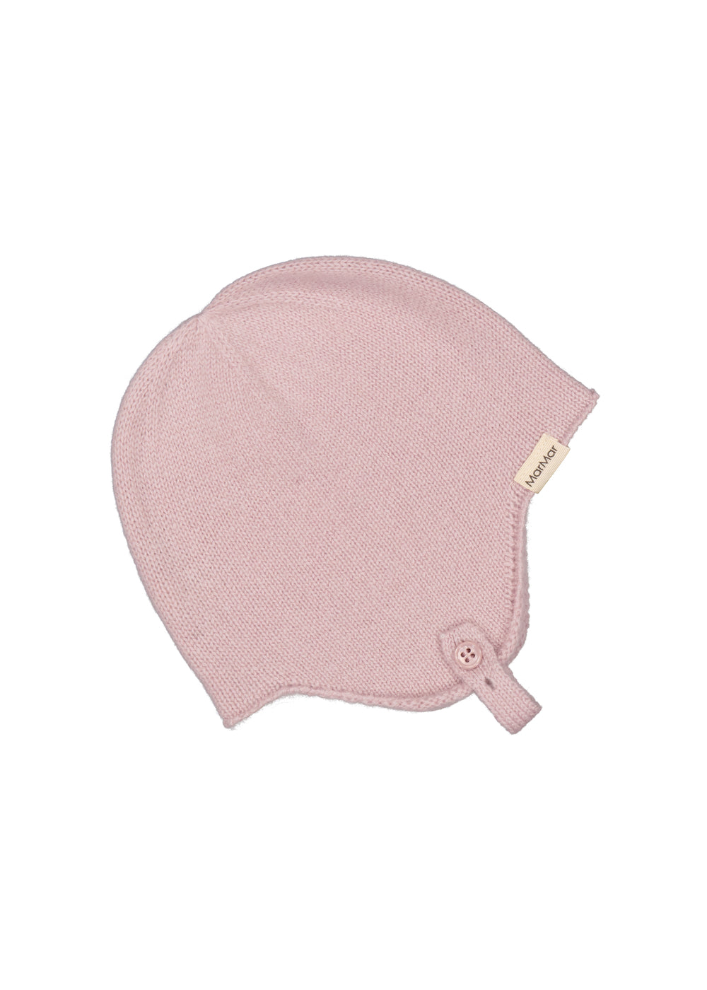 Lille kashmir hue til baby der går ned over ørene, med en rem under hagen der lukkes med knap i to længder. Huen er ultra blød, varm og behagelig at have på og helt perfekt til de koldere dage.