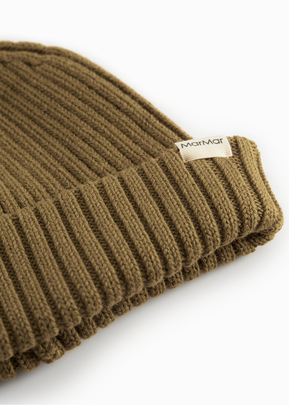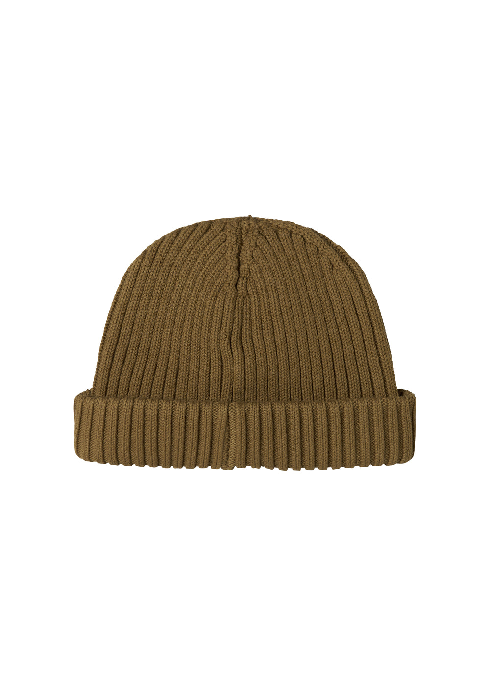 Klassisk beanie med bredt ombuk i kanten der både kan bruges med et eller to ombuk. Huen er både varm og behagelig at have på og perfekt til foråret.