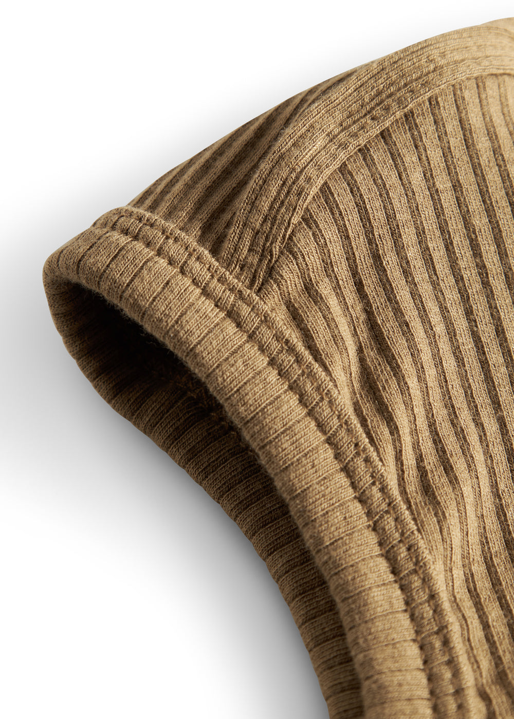 Elefanthuen til baby med god pasform. Elefanthuen er ribstrikket, blød, strækbar og behagelig at have på.