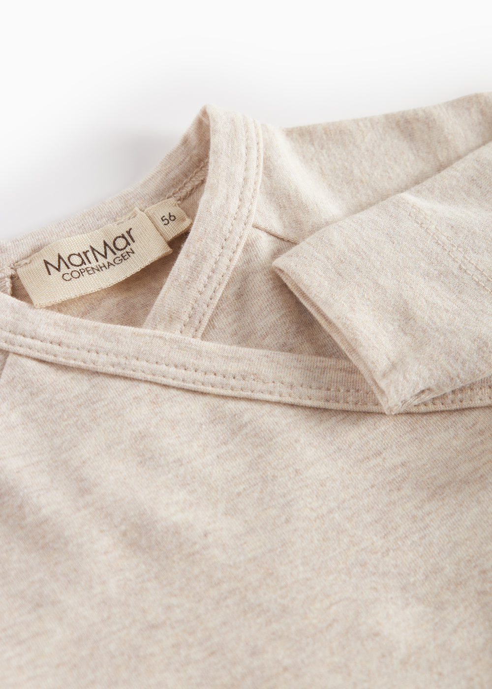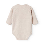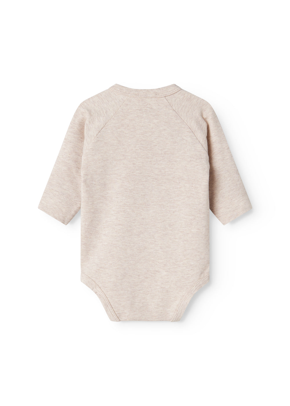 Langærmet bodystocking til nyfødte med slå-om-lukning.