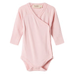Langærmet bodystocking til nyfødte med slå-om-lukning. Bodystockingen lukkes med trykknapper foran og er utrolig blød, meget strækbar og behagelig at have på.