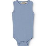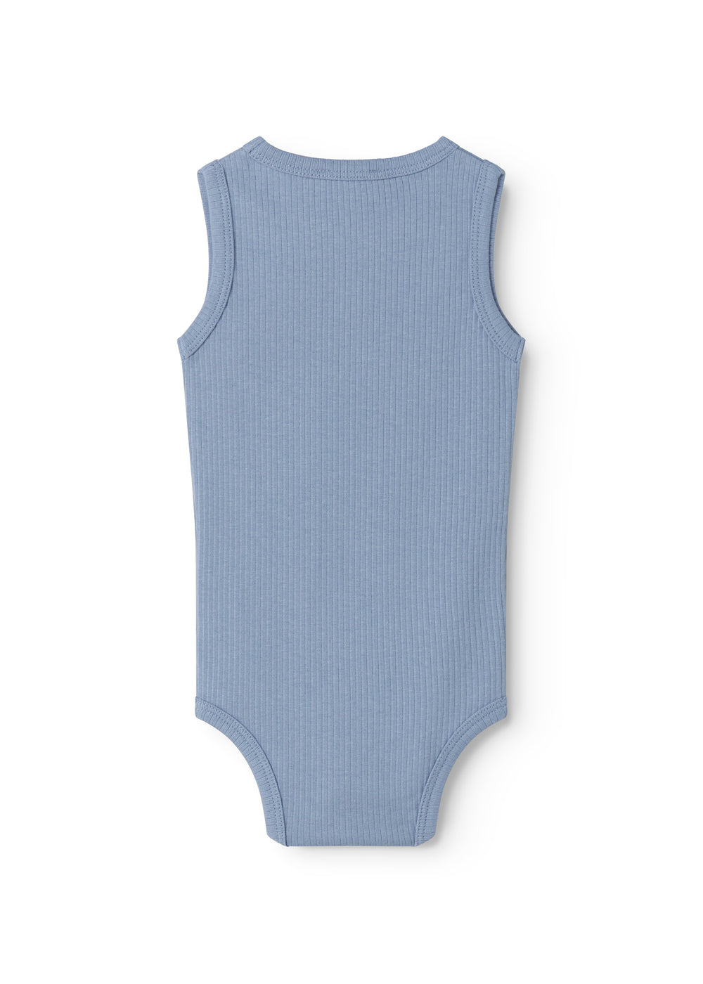 Bodystocking uden ærmer, der bliver lukket med trykknapper mellem benene for nem bleskiftning. Bodystockingen er ribstrikket, blød, holder form og farve og har elastan i sig som gør den strækbar og behagelig at have på.