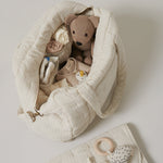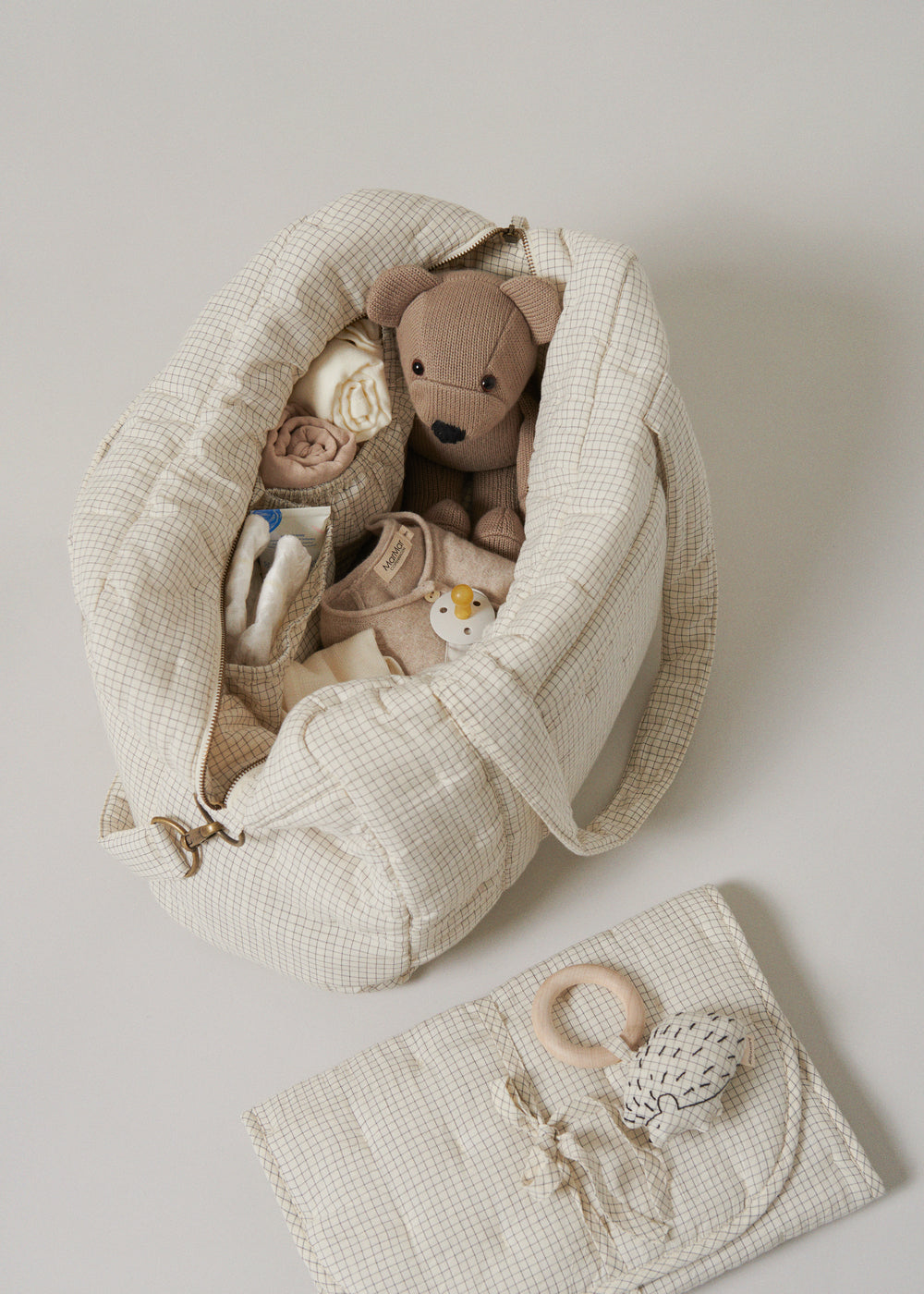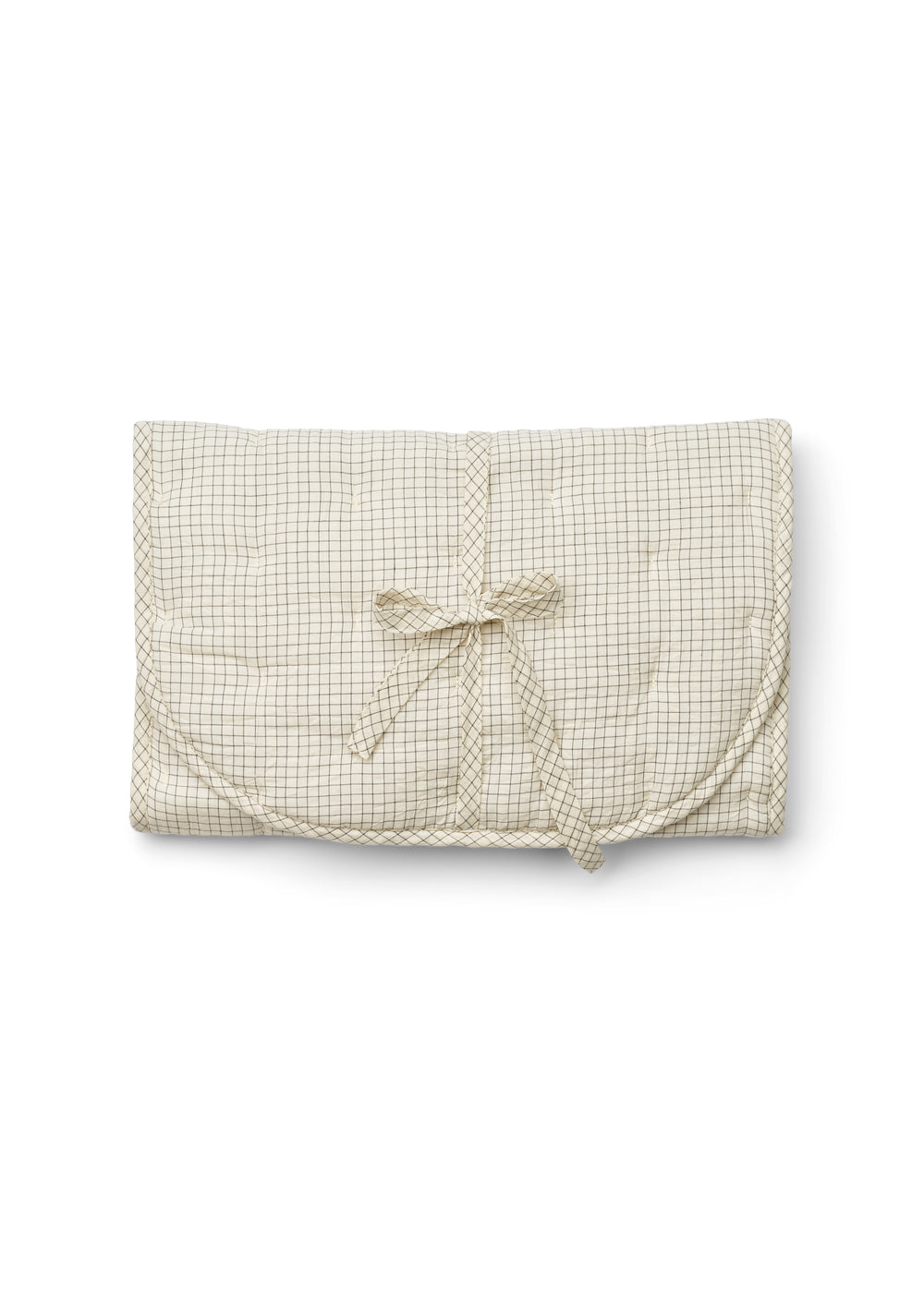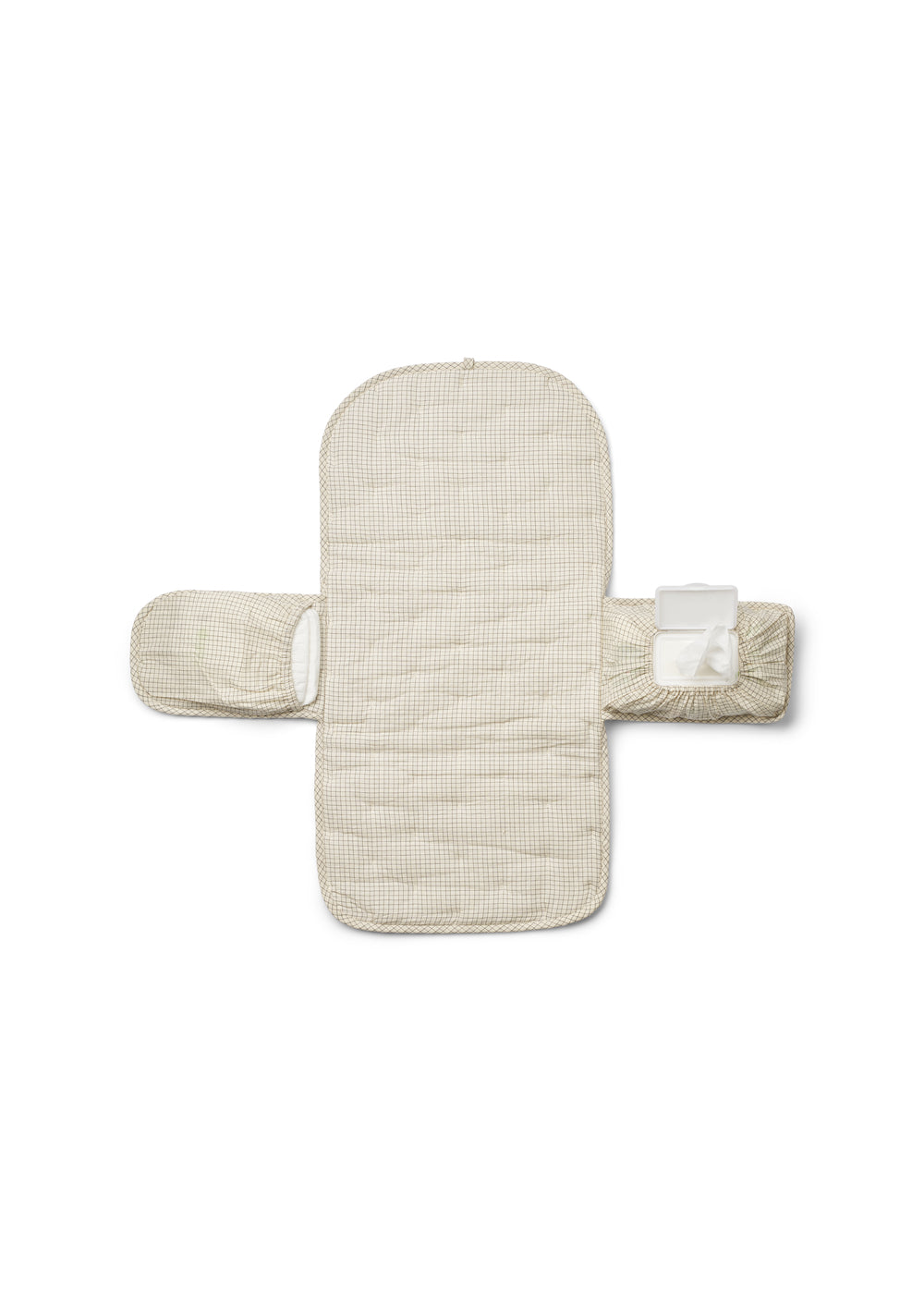 Pusleunderlag der nemt kan tages med på farten. Pusleunderlaget kan foldes ud og har med sine to lommer i siden plads til både vådservietter og bleer. Måler udfoldet ca. B:35 x H:70 cm + lommer
