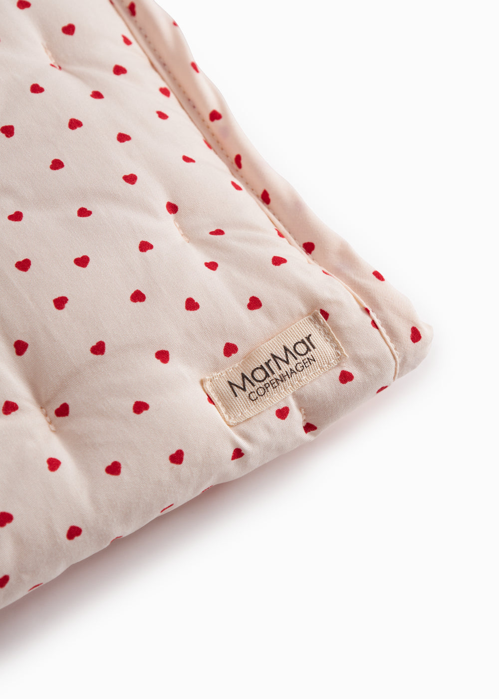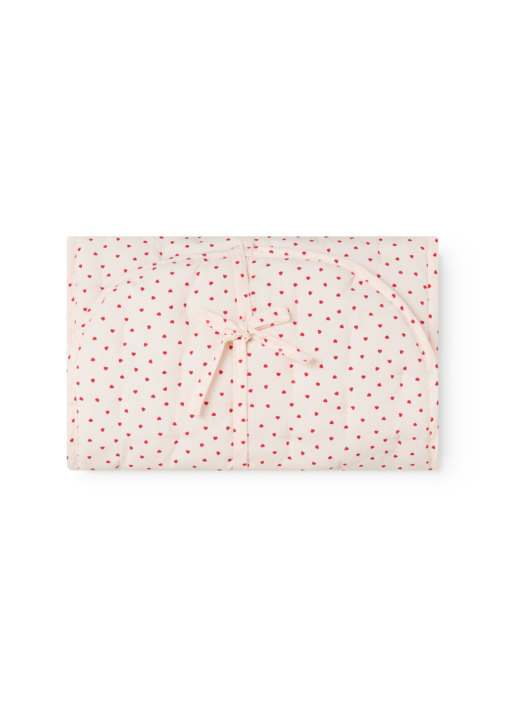 Pusleunderlag med et fint hjerte print, der nemt kan tages med på farten. Pusleunderlaget kan foldes ud og har med sine to lommer i siden plads til både vådservietter og bleer. Måler udfoldet ca. B:35 x H:70 cm + lommer.