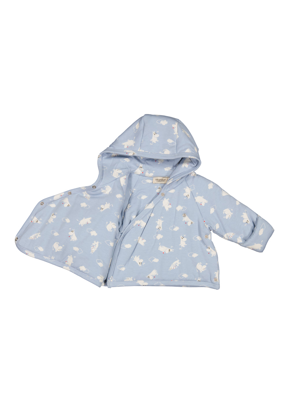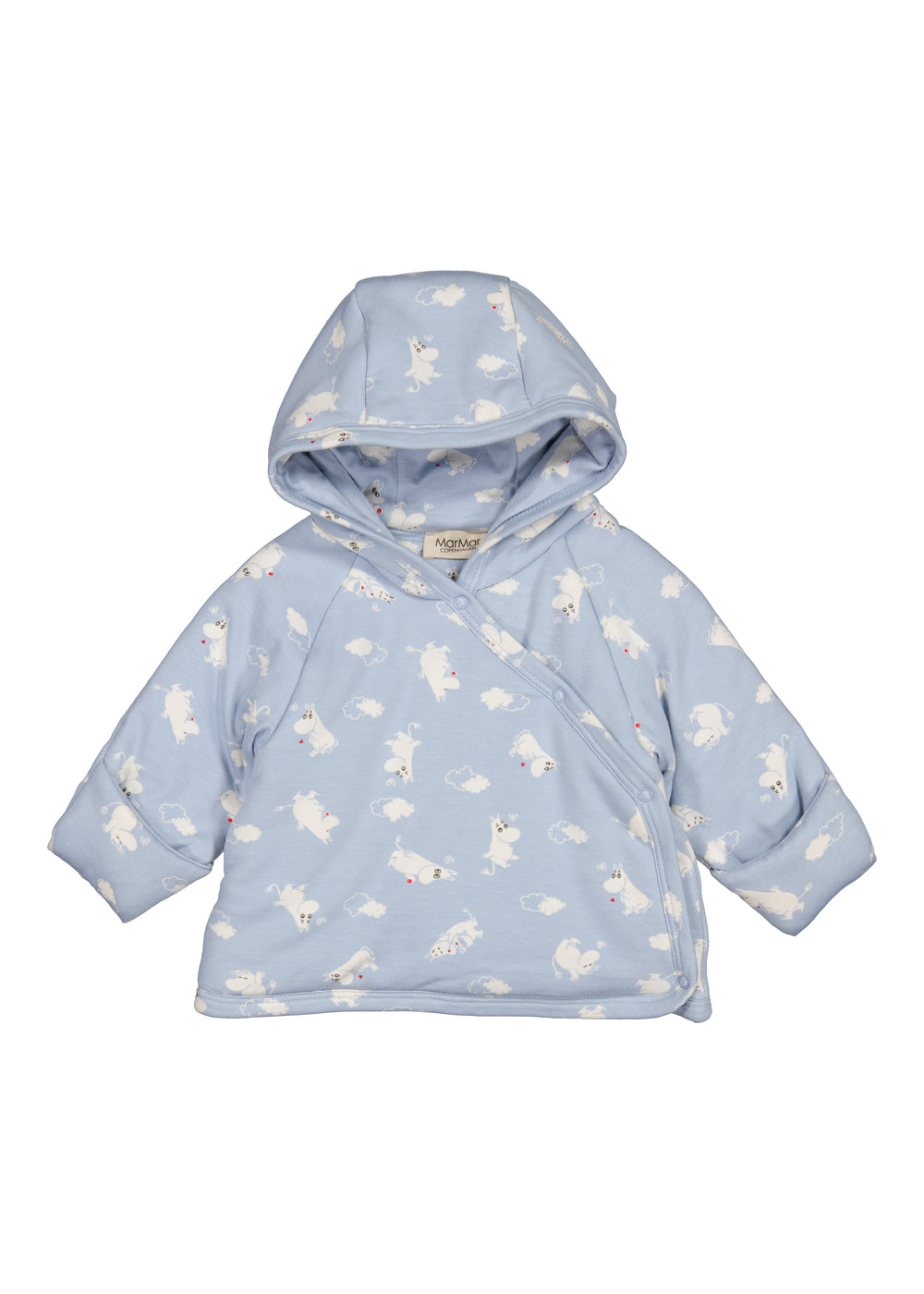 Varm vatteret jakke med sødt Moomin print til de mindste, med hætte og knap slå-om-lukning.. Jakken fra 0M-9M har smart ombuk mulighed på ærmerne for at holde den lille varm