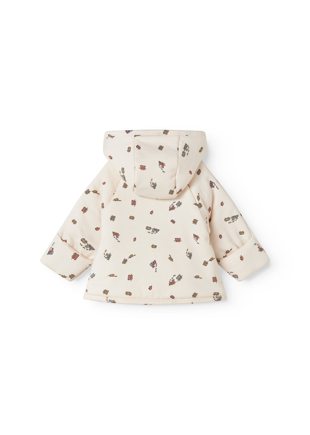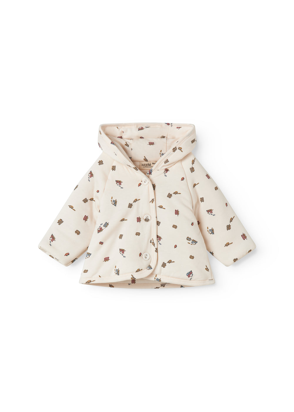 Varm vatteret jakke med knaplukning og hætte. Jakken har smart ombuk mulighed på ærmerne for at holde den lille varm. Jakken er både blød, strækbar og behagelig at have på.