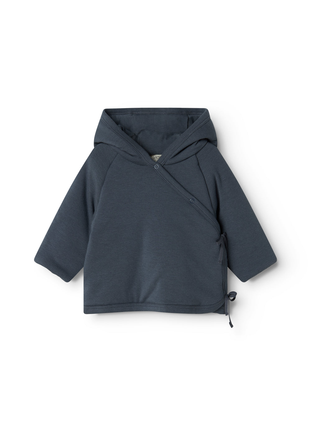 Jakken lukkes med trykknapper og bindebånd.