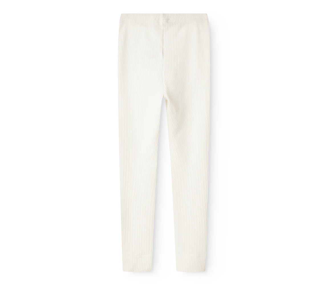 Leggingsene er ribstrikket, bløde, holder form og farve og har elastan i sig som gør dem strækbare og behagelige at have på.