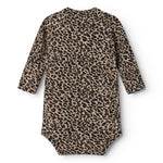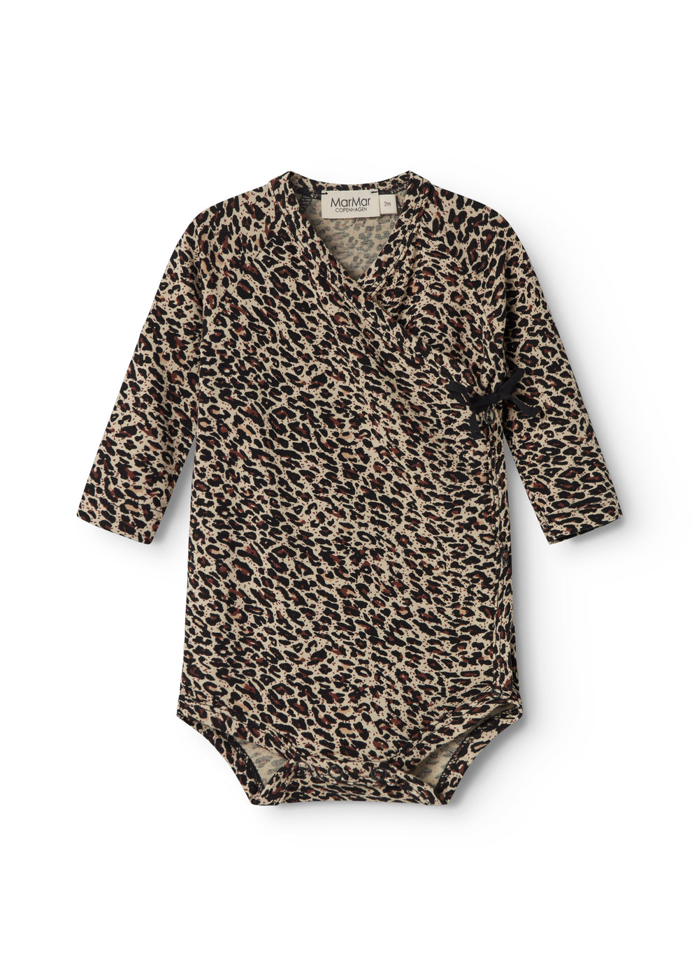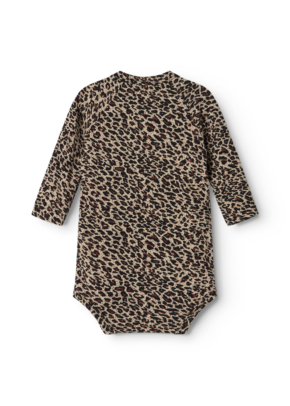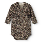 Langærmet bodystocking til nyfødte med slå-om-lukning. Lukkes med trykknapper og bindebånd