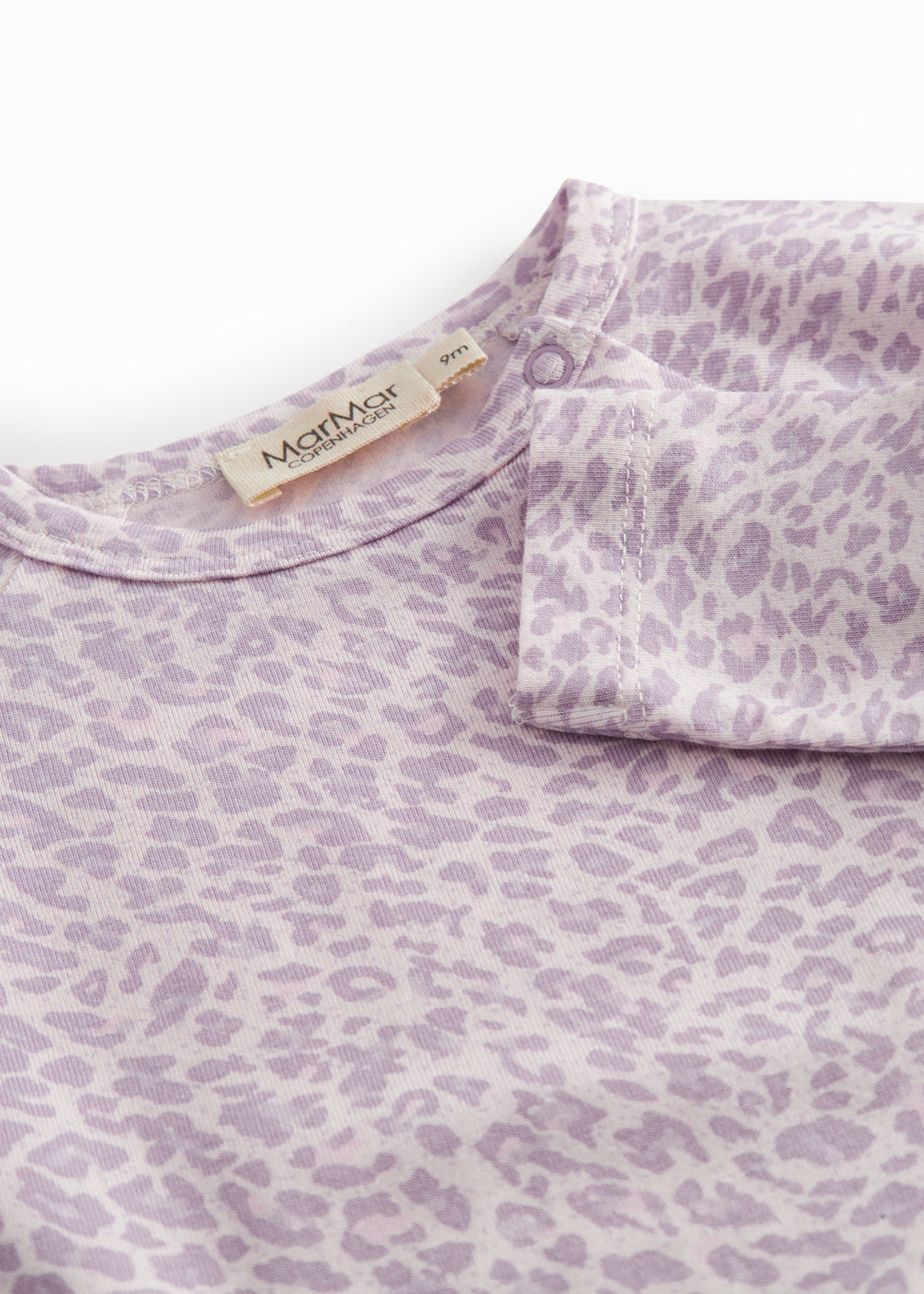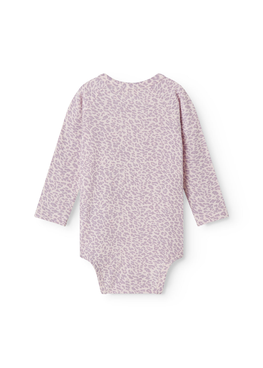 Enkel langærmet leopard baby bodystocking, der bliver lukket med trykknapper på venstre skulder samt mellem benene for nem bleskiftning. Bodystockingen er både blød, strækbar og behagelig at have på.