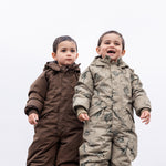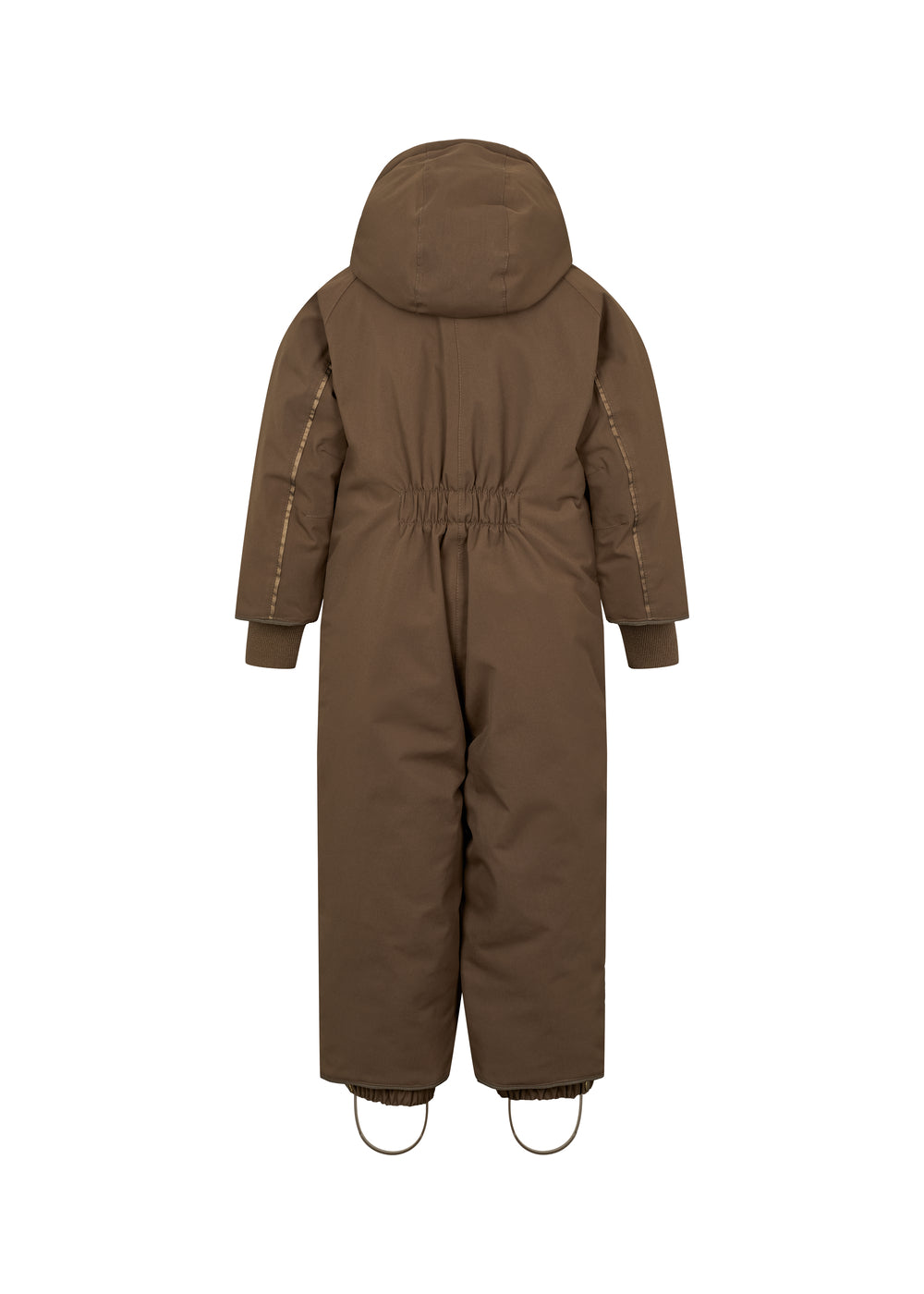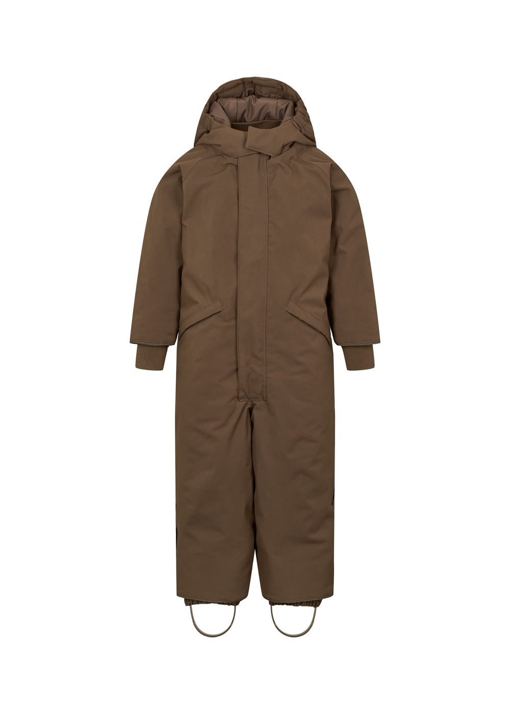 Behagelig, varm og rummelig vinter flyverdragt til børn som føles meget let og blød på kroppen. Flyverdragten har skrå sidelommer med lynlås og lukkes foran med både lynlås og trykknapper. Flyverdragten er udstyret med aftagelig hætte, justerbare siliconestropper, som kan fastgøres under støvlerne for at sikre en god pasform og forhindre sne i at trænge ind. Flyverdragten har elastiske seler indvendigt, hvilket giver mulighed for at åbne dragten op i bilen eller supermarkedet på vej hjem, hvor en heldragt ofte kan føles for varm for barnet.
