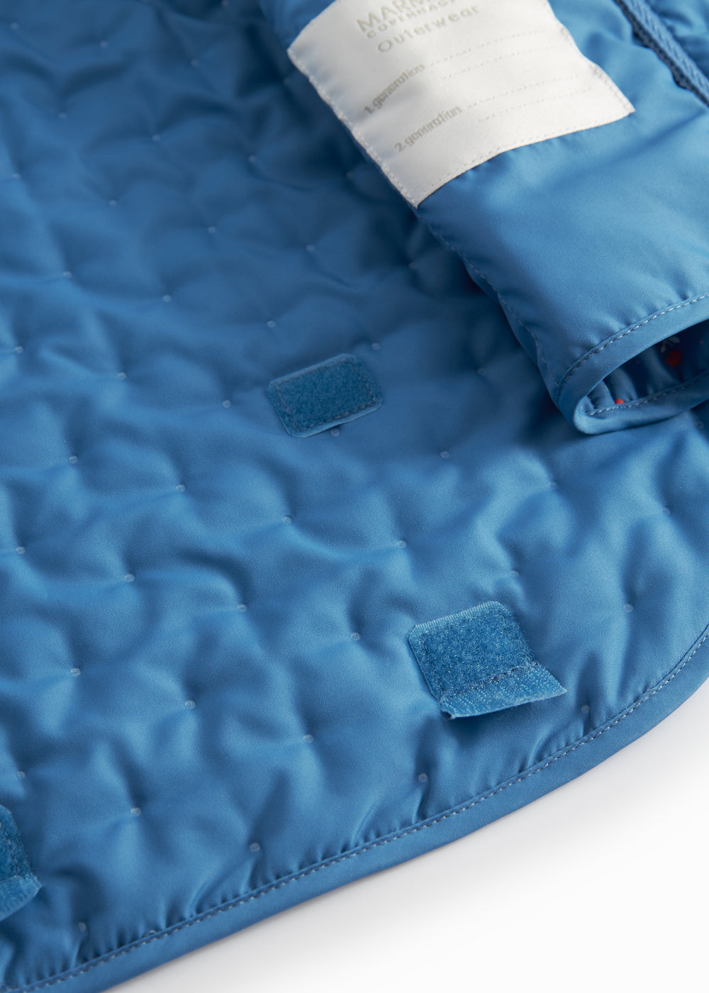 Jakken kan justeres i to længder bagpå med en smart velcrolukning