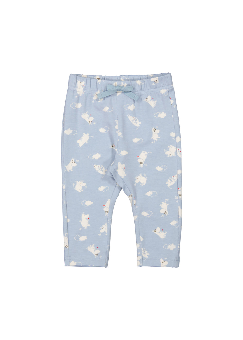 Behagelig bukser med et sødt Moomin print med elastik og et pyntebånd i livet. Bukserne er både bløde, strækbare og behagelige at have på