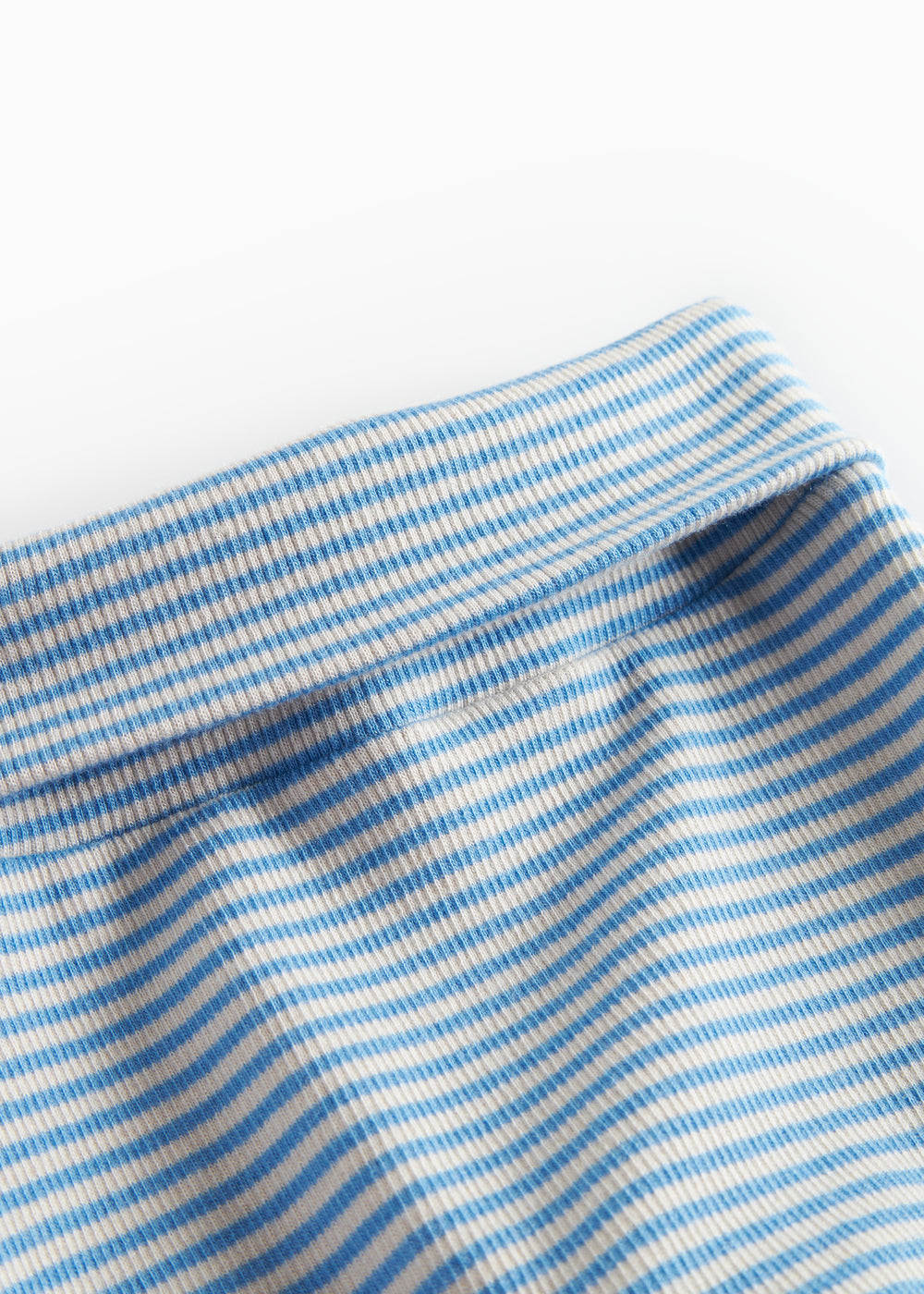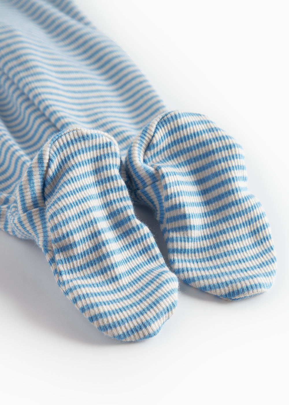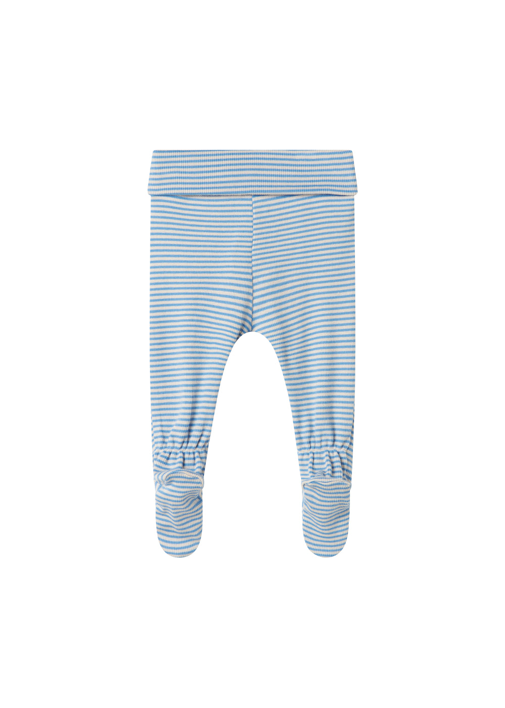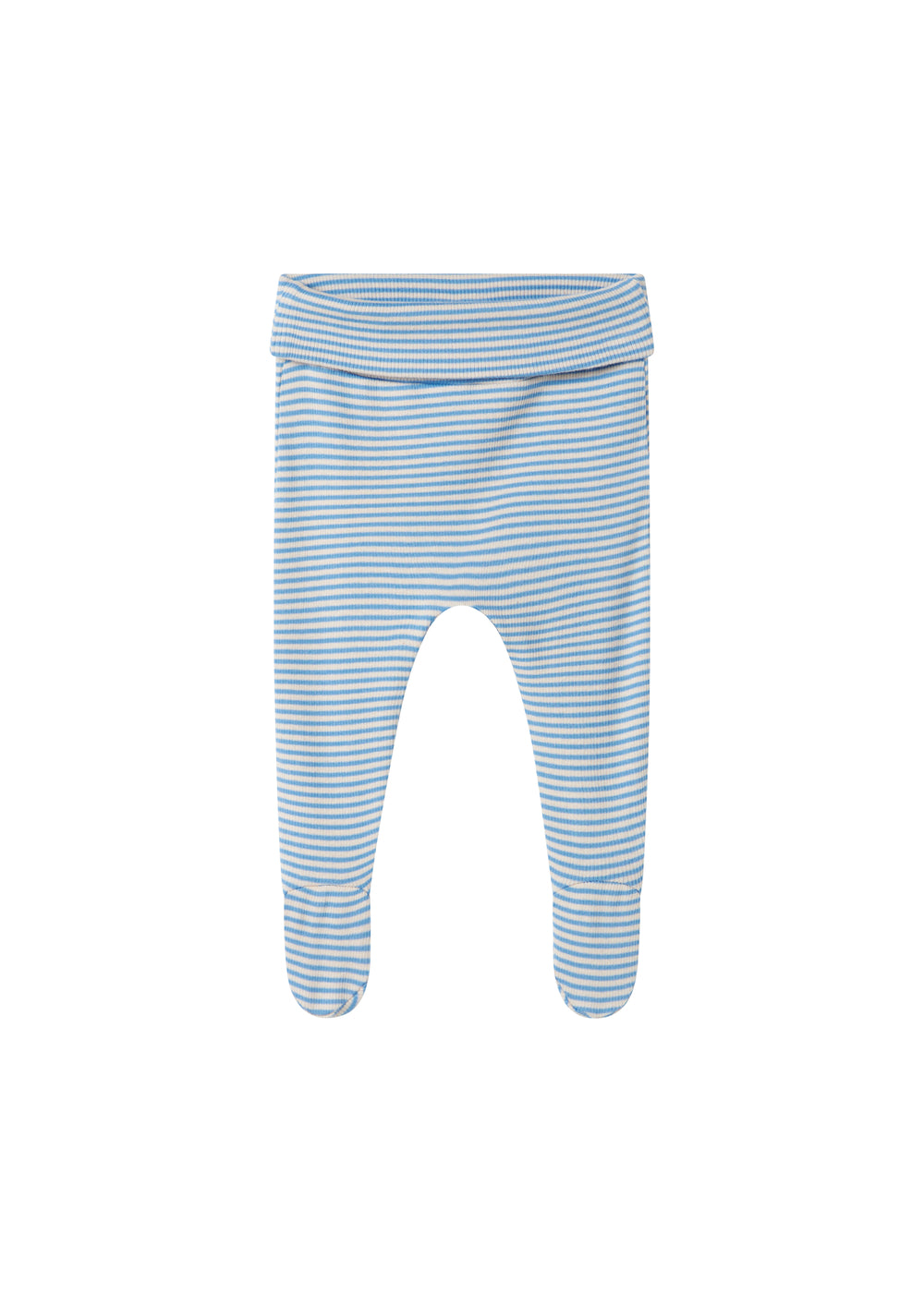 Behagelige bukser med fødder til nyfødte med fine striber. Bukserne er både bløde, holder form og farve og har elastan i sig som gør dem strækbar og behagelig at have på.