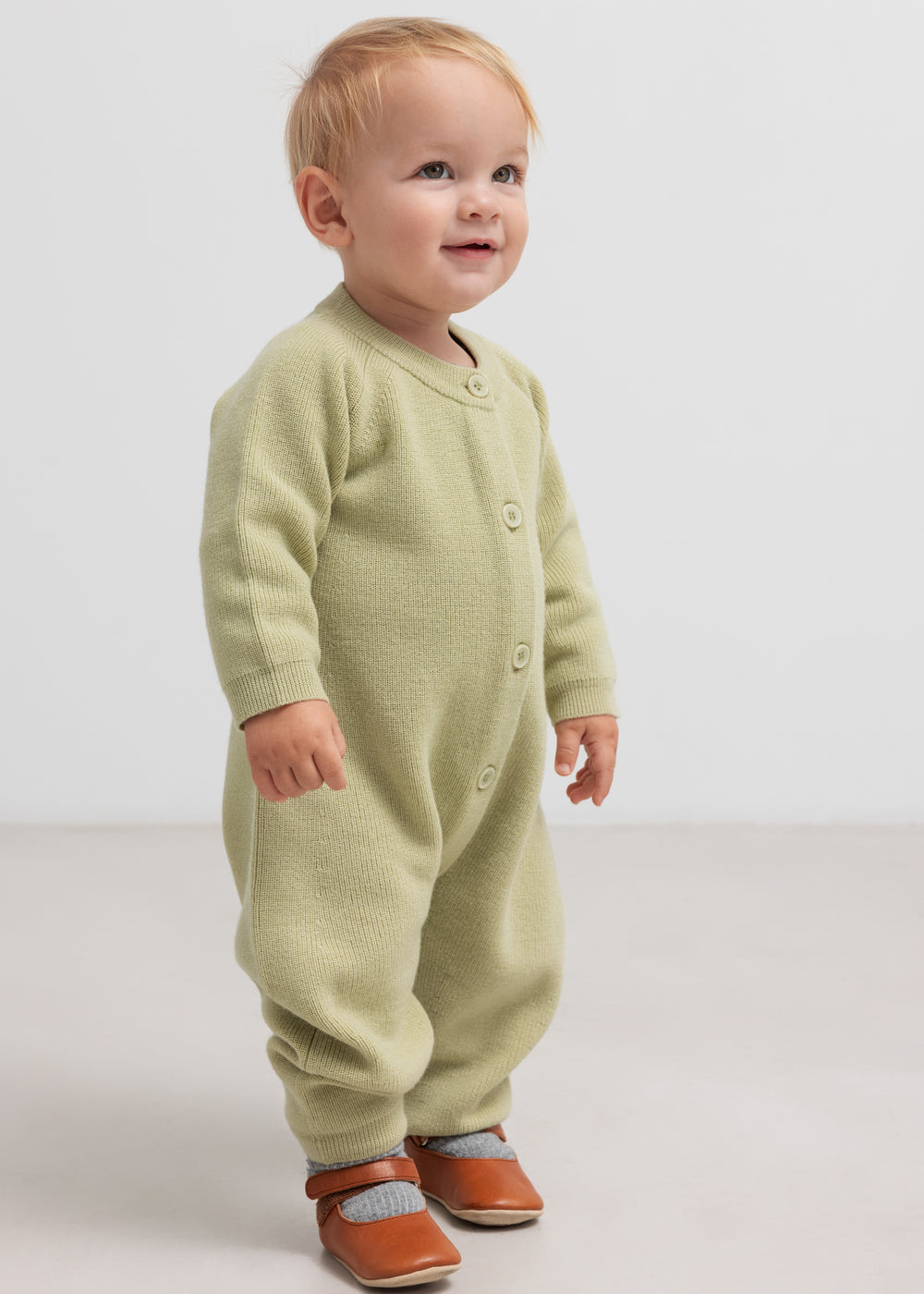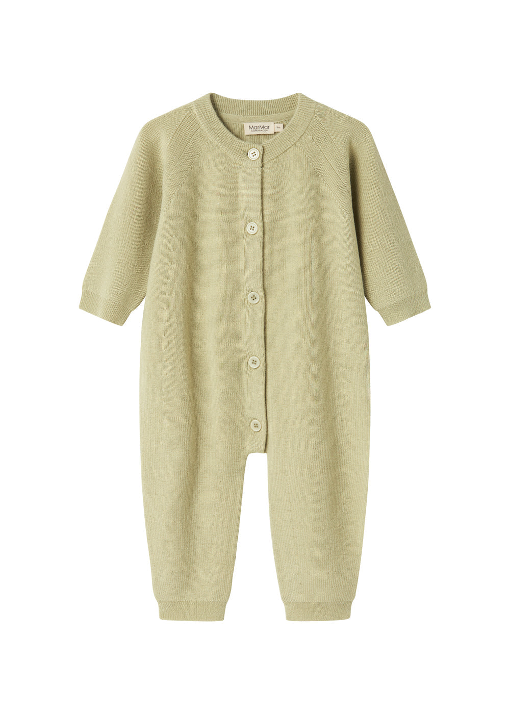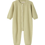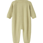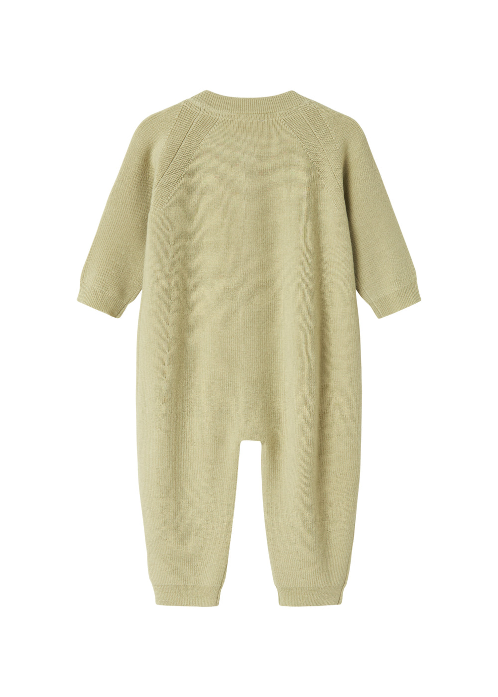 Strikdragt til de mindste i merino uld med raglanærmer og knaplukning foran. Dragten er både blød og behagelig at have på - Perfekt til de koldere dage.