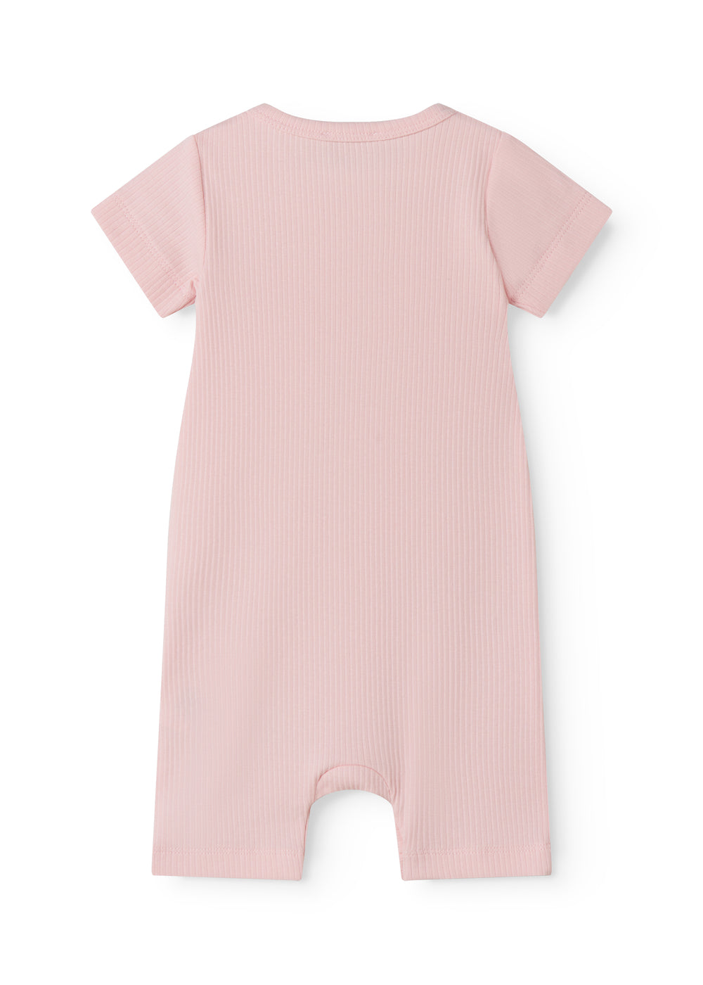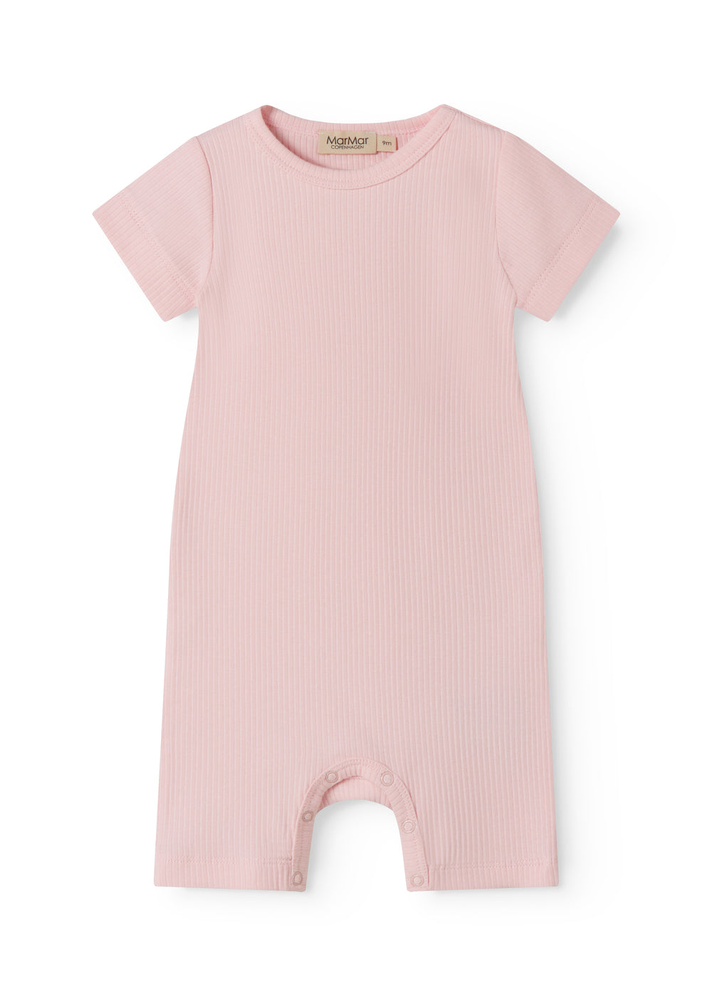 Kortærmet baby modal romper med korte ben, der bliver lukket med trykknapper mellem benene for nem bleskiftning. Romperen er ribstrikket, blød, holder form og farve og har elastan i sig som gør den strækbar og behagelig at have på.
