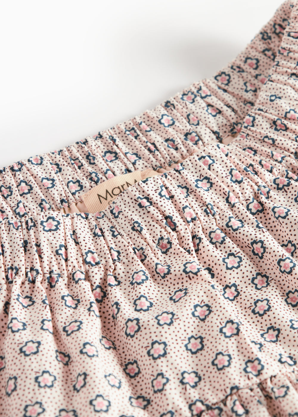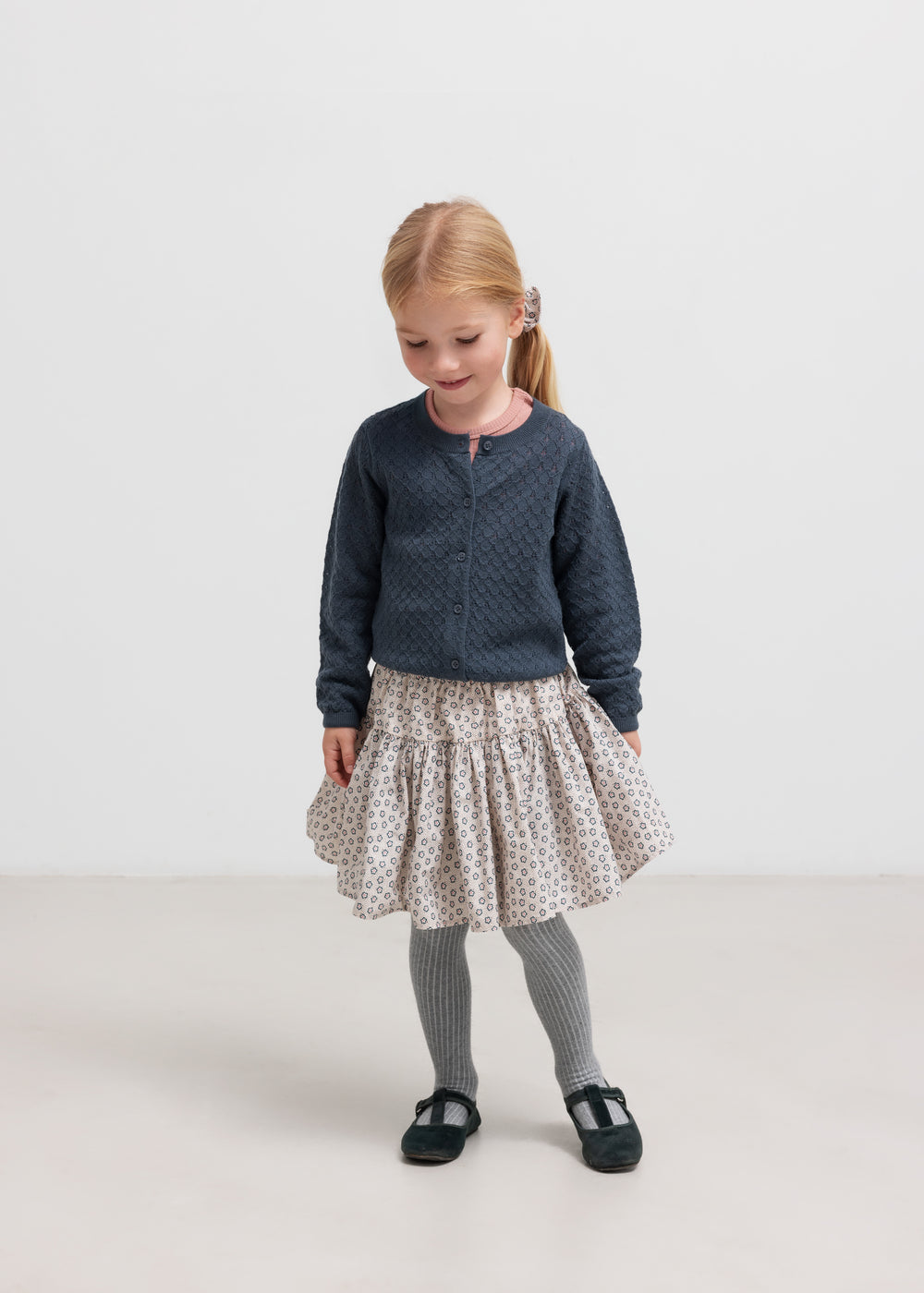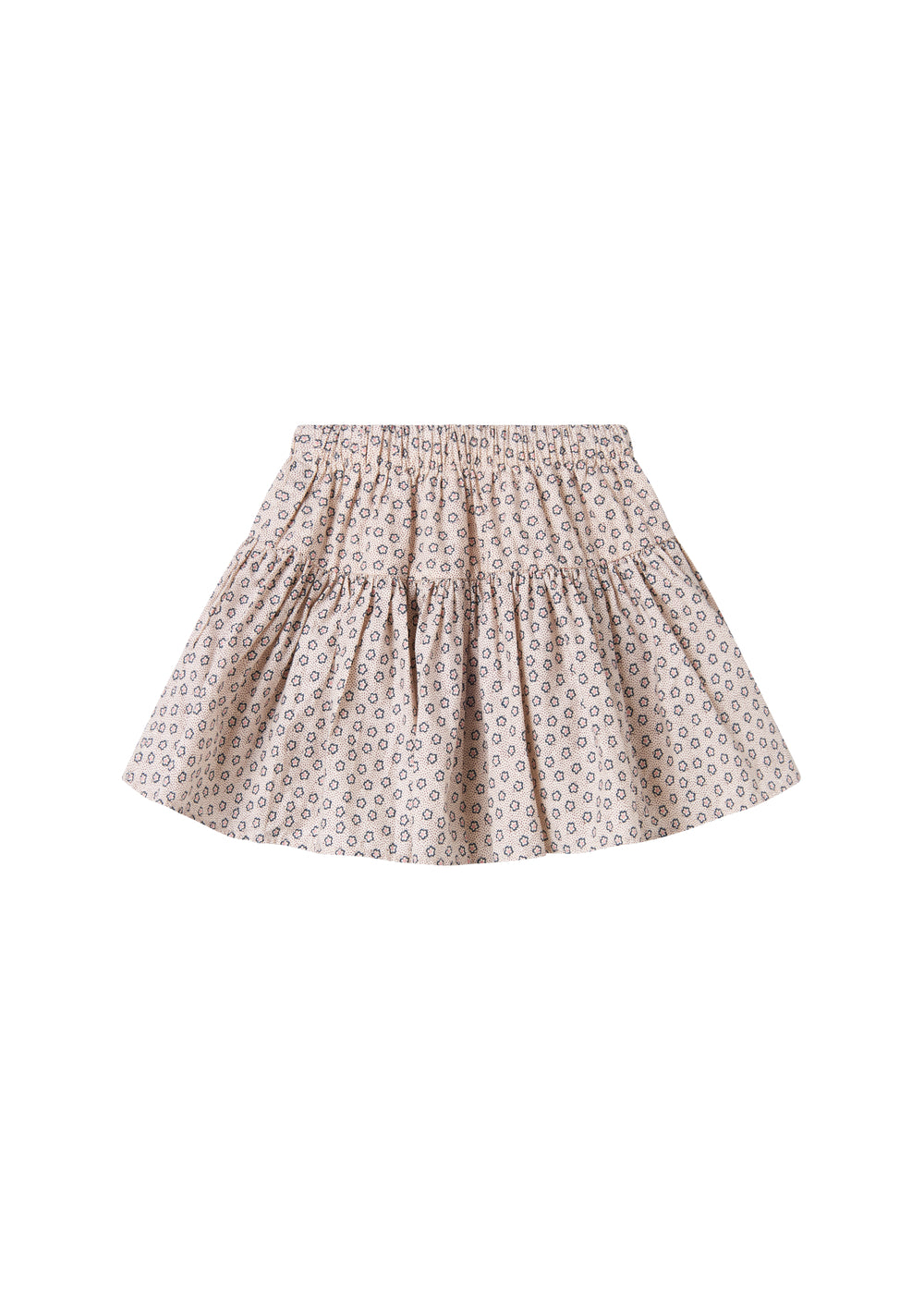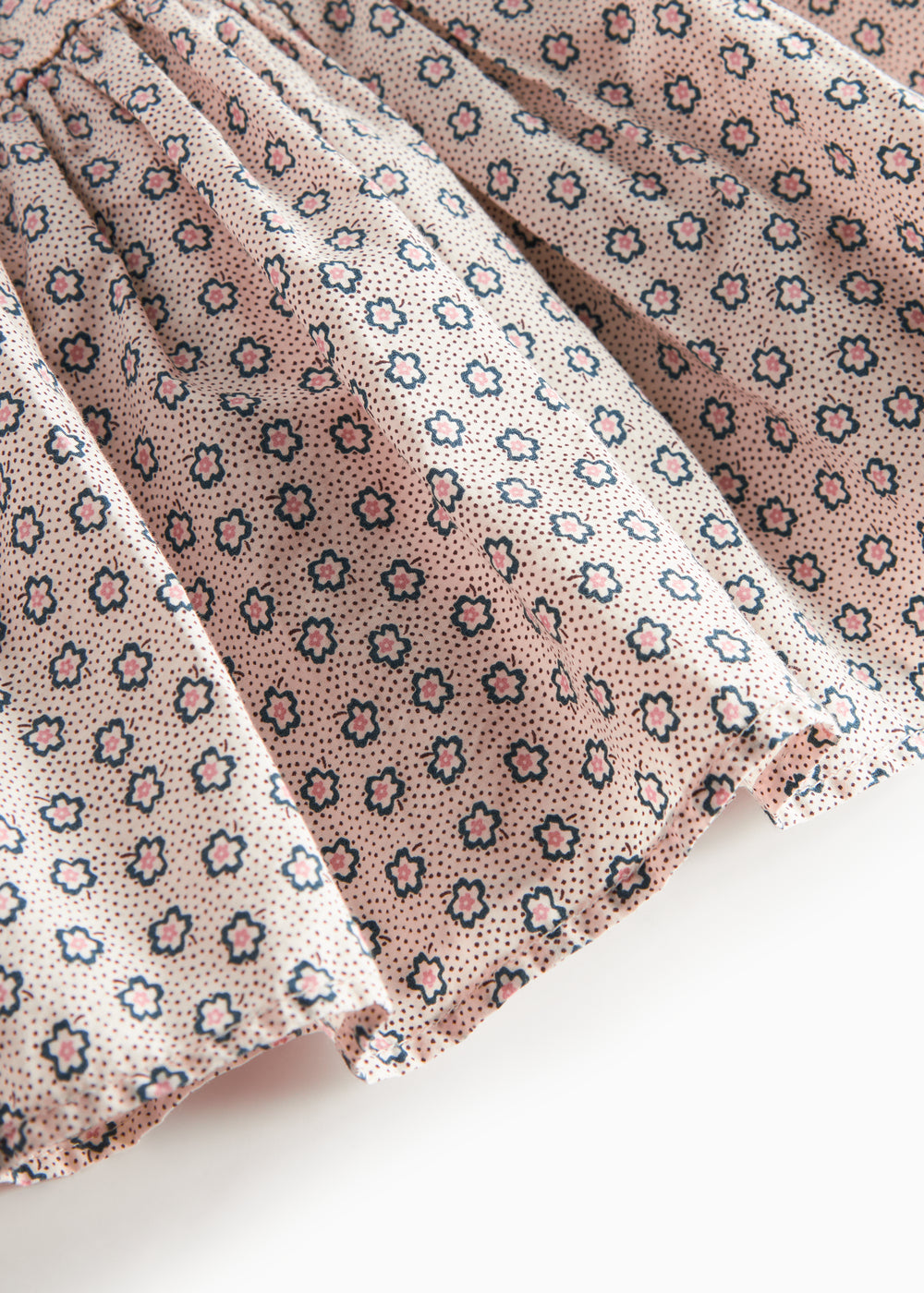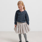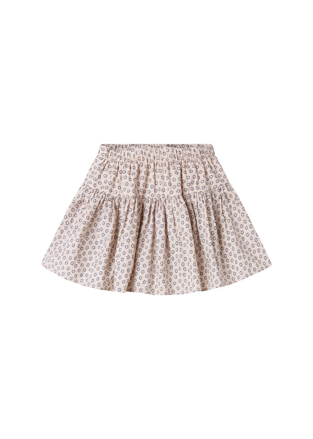 Nederdel til børn med vidde og fint håndtegnet blomster print. Nederdelen har elastik i taljen samt et bærestykke, der skaber en fin form. Nederdelens længde går til over knæet og er både behagelig, let og luftig at have på.