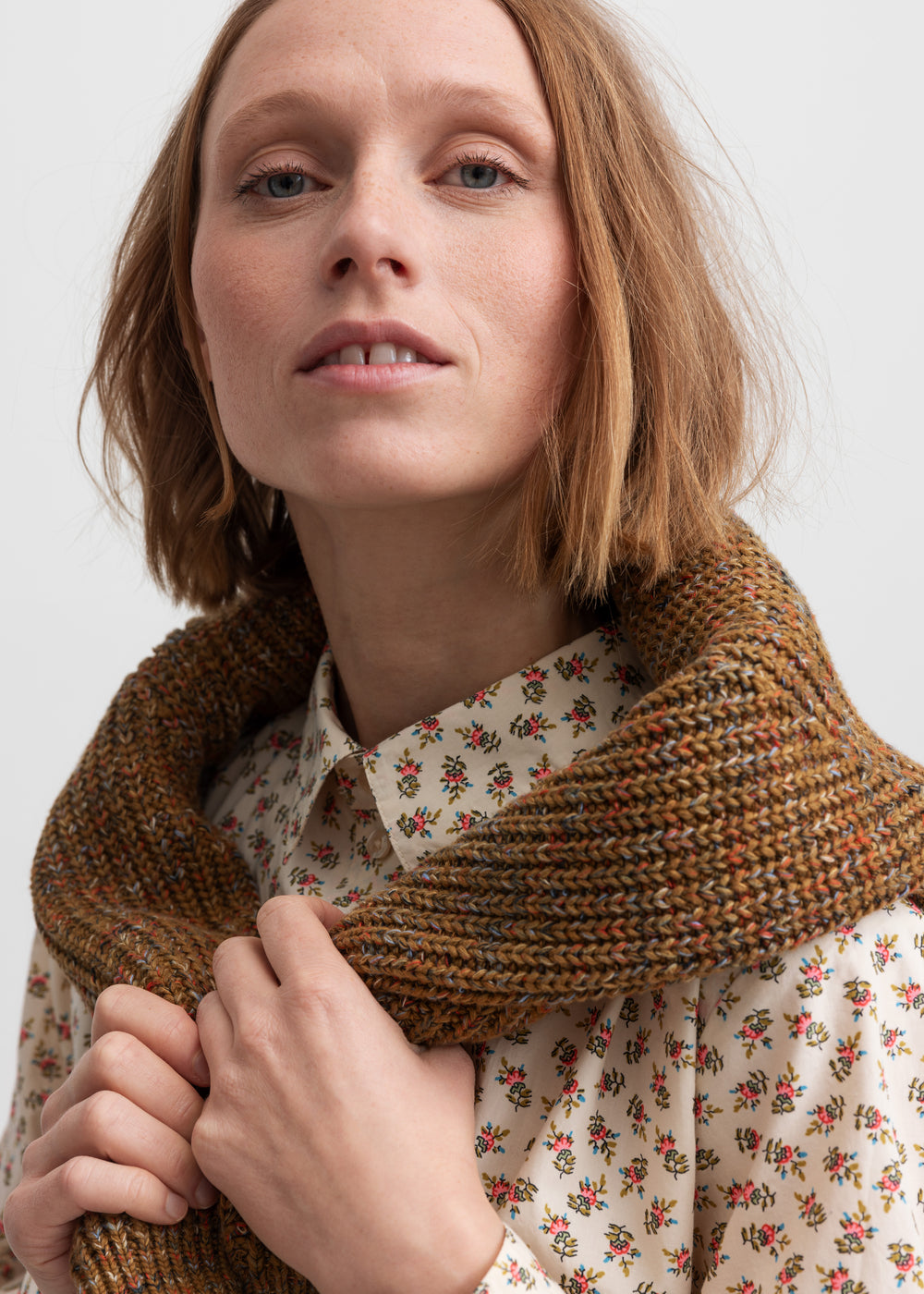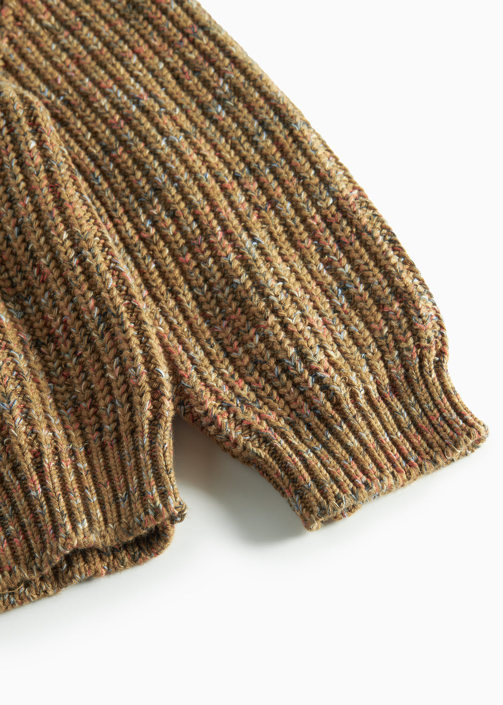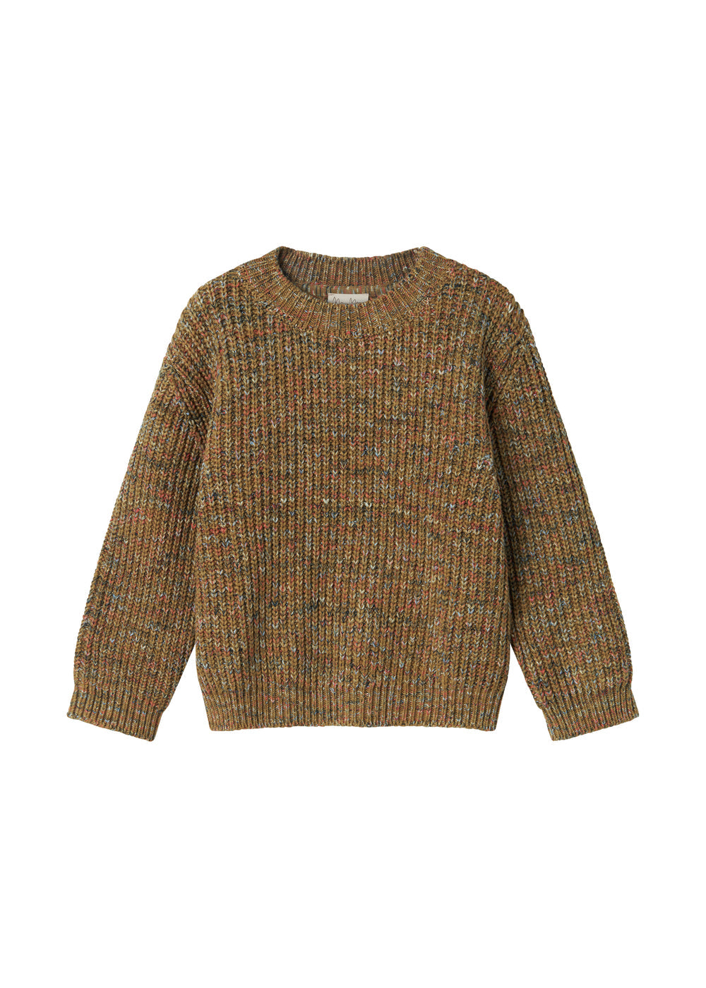 Klassisk chunky langærmet ribstrik trøje til kvinder i meleret garn med rund hals. Striktrøjen er både varm og behagelig at have på.