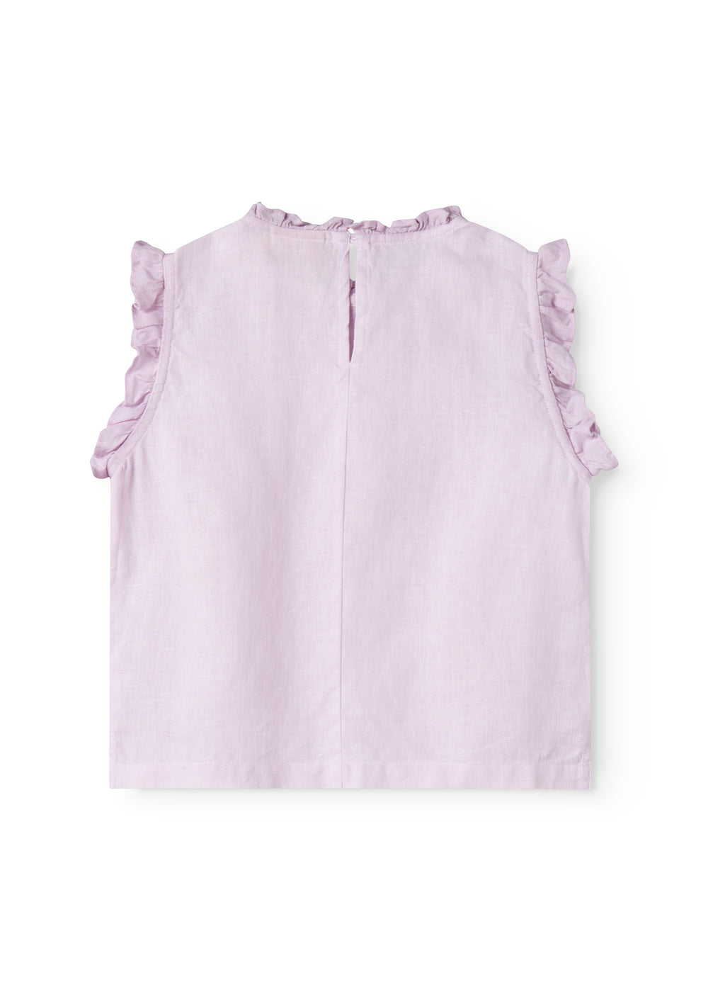 Ærmeløs lys lilla top til børn med flæsedetaljer