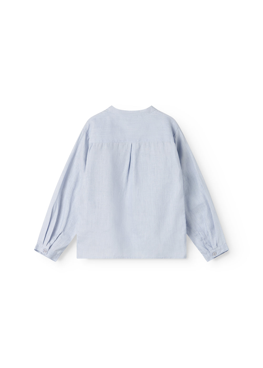 Lyseblå langærmet skjorte til børn med kinakrave og knaplukning foran