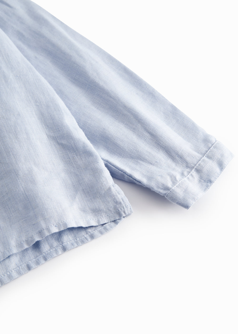 Langærmet skjorte til børn i luftig hør kvalitet, med kinakrave og knaplukning foran. Skjorten har et behageligt fit.