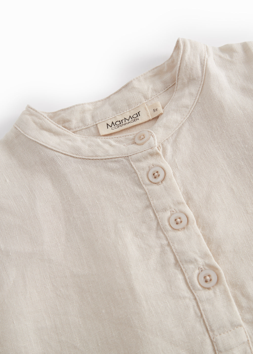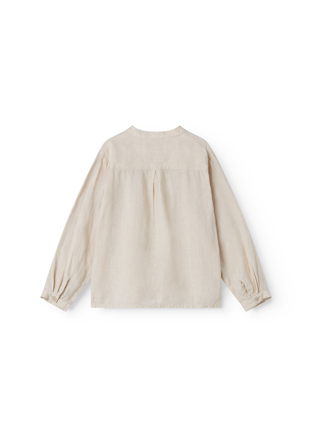Langærmet skjorte til børn i luftig hør kvalitet, med kinakrave og knaplukning foran. Skjorten har et behageligt fit.