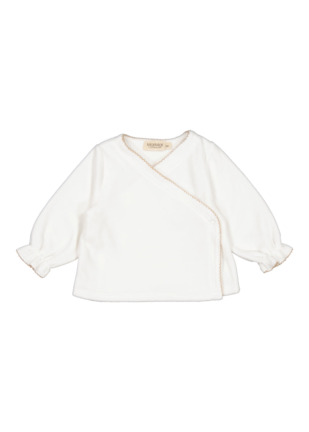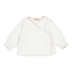Langærmet bluse til nyfødte med slå-om-lukning. Blusen Lukkes med trykknapper