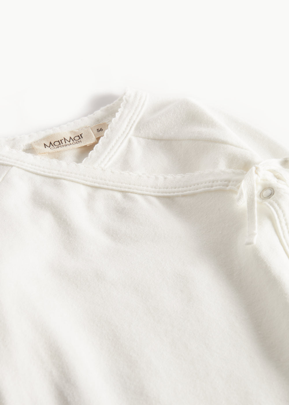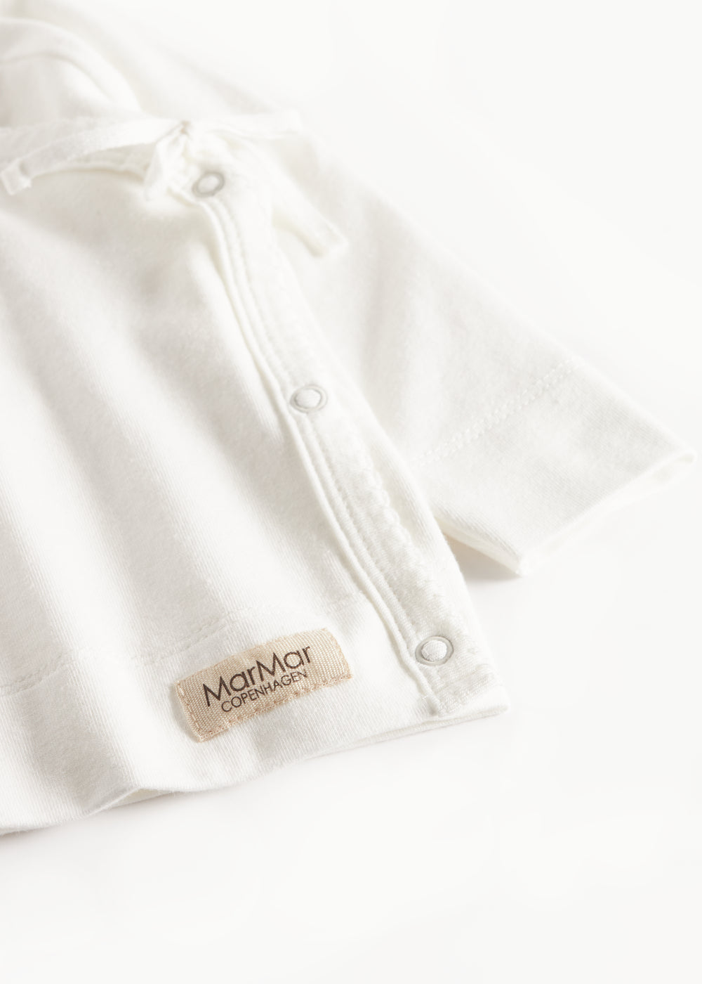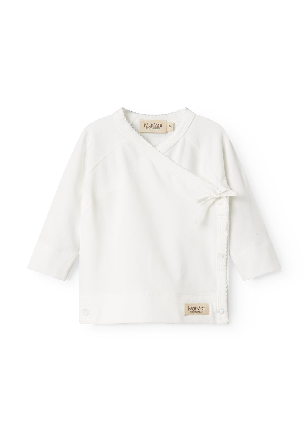Langærmet bluse til nyfødte med slå-om-lukning.
